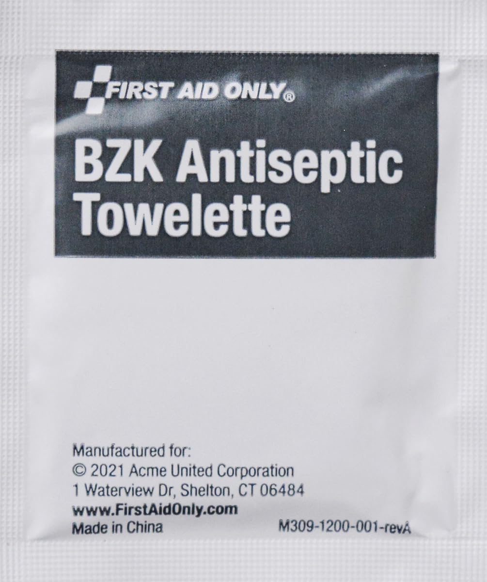 OSHA Compliant Emergency Kit: Includes adhesive bandages, antibiotic ointments, BZK antiseptic towelettes, gauze roll and pads, gloves, CPR mask, scissors, tweezers, other multi-use first aid items, and a 4-ounce eye wash