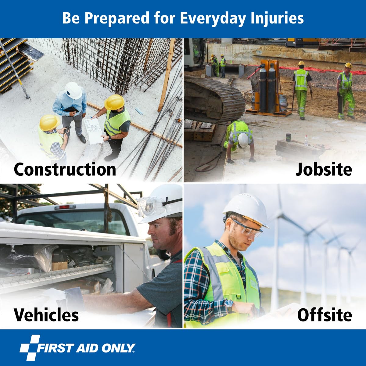 Convenient Packaging: An ideal worksite or office first aid kit, home first aid kit, or car first aid kit, this set of safety-oriented essentials features a durable, weatherproof type III plastic case with an easy-to-carry handle for transporting first aid supplies