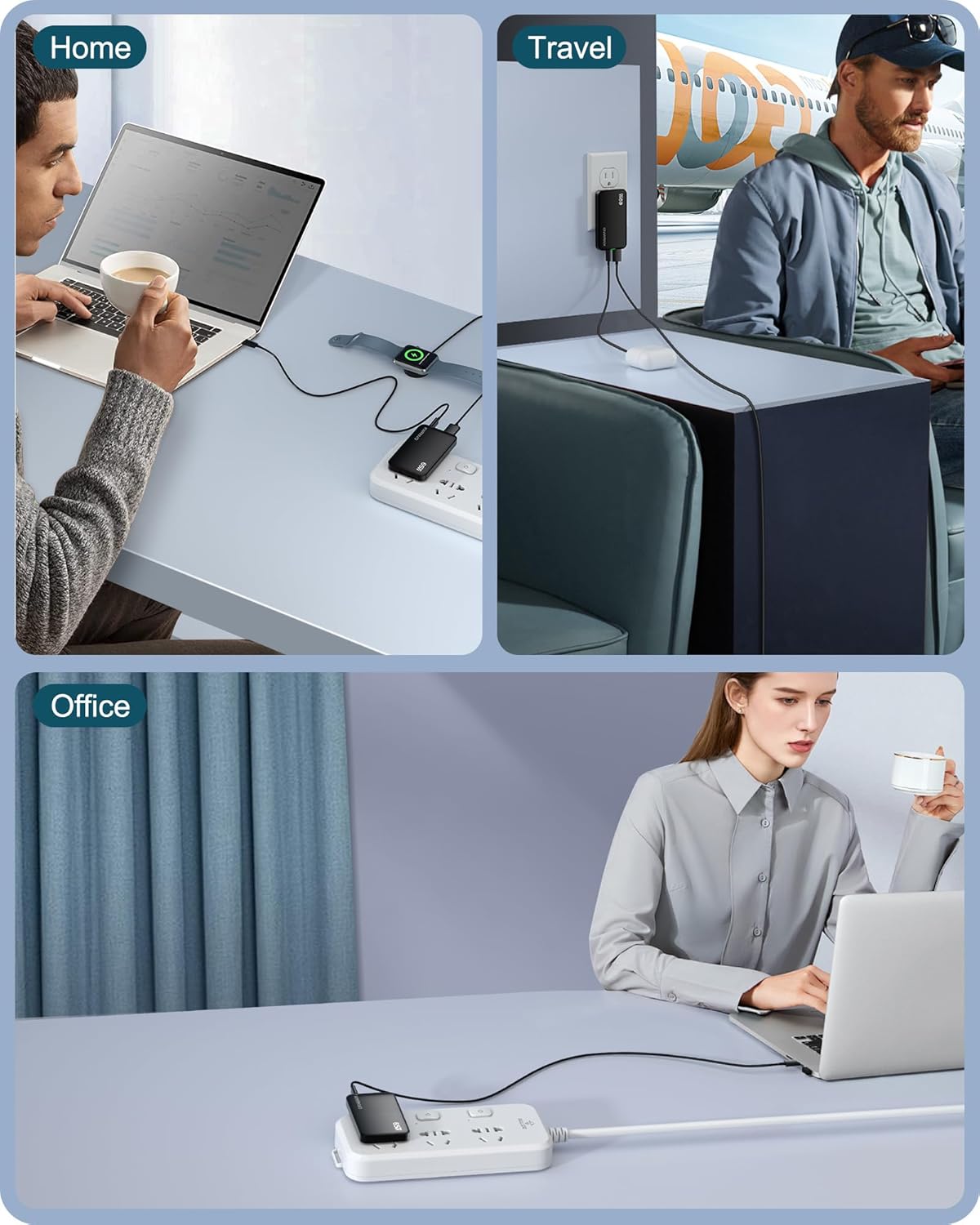 Ultra-Fast 65W USB GaN Charger : Leveraging cutting-edge Gallium Nitride (GaN) technology, our ultra-thin USB charger boasts a maximum power output of 65W, ensuring rapid charging speeds for your high-power devices like laptops and tablets, charge your Macbook Pro to 50% in 30mins