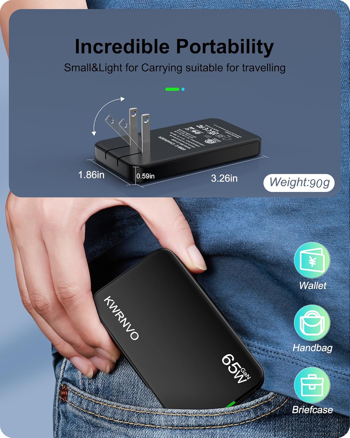 KWRNVO Offers You: 1 ultra-thin 65W flat USB wall charger, 24/7 after-sales support, a 45-day hassle-free return policy, and a 365-day replacement guarantee. If you have any questions about the charger, please feel free to contact us, and we will respond to you within 24 hours