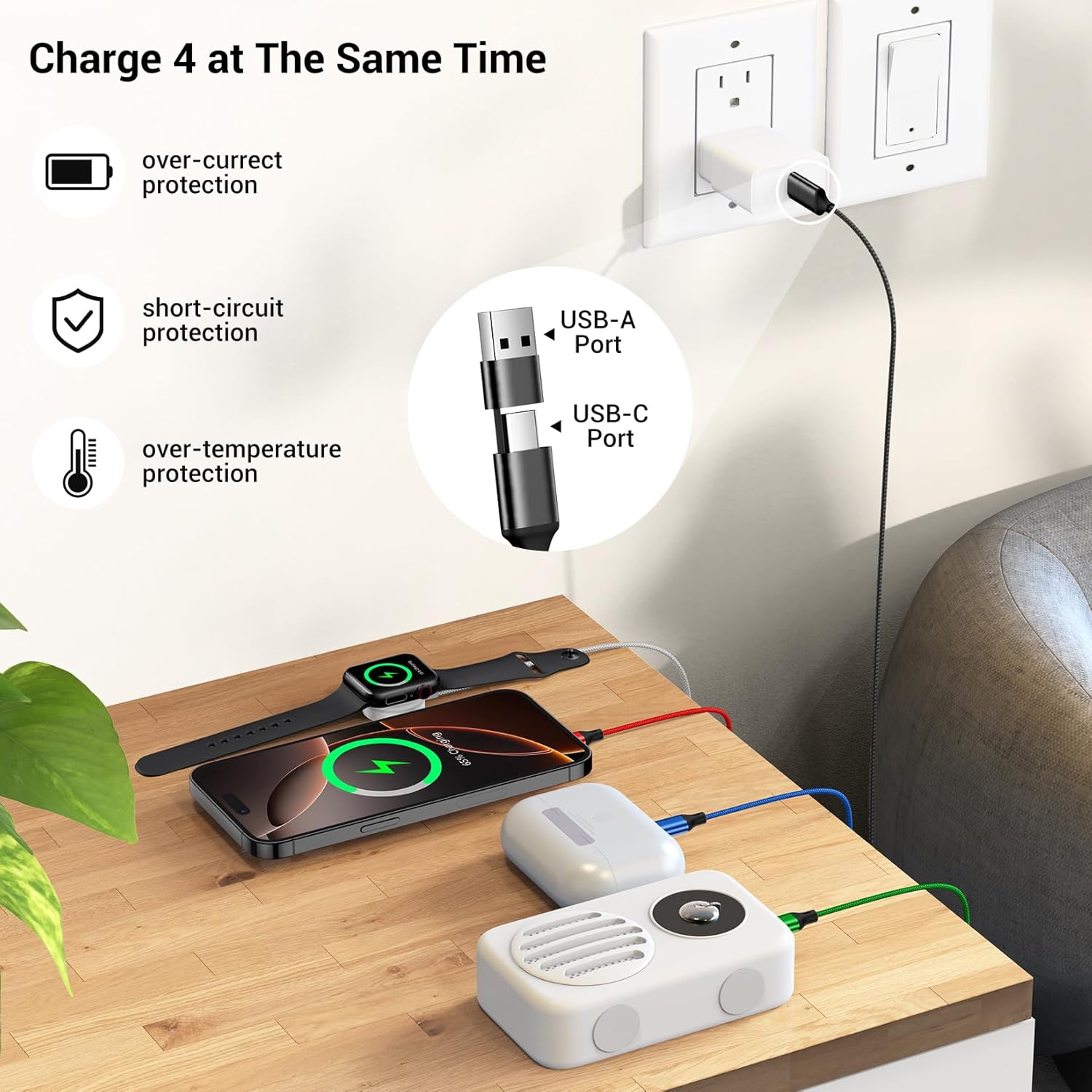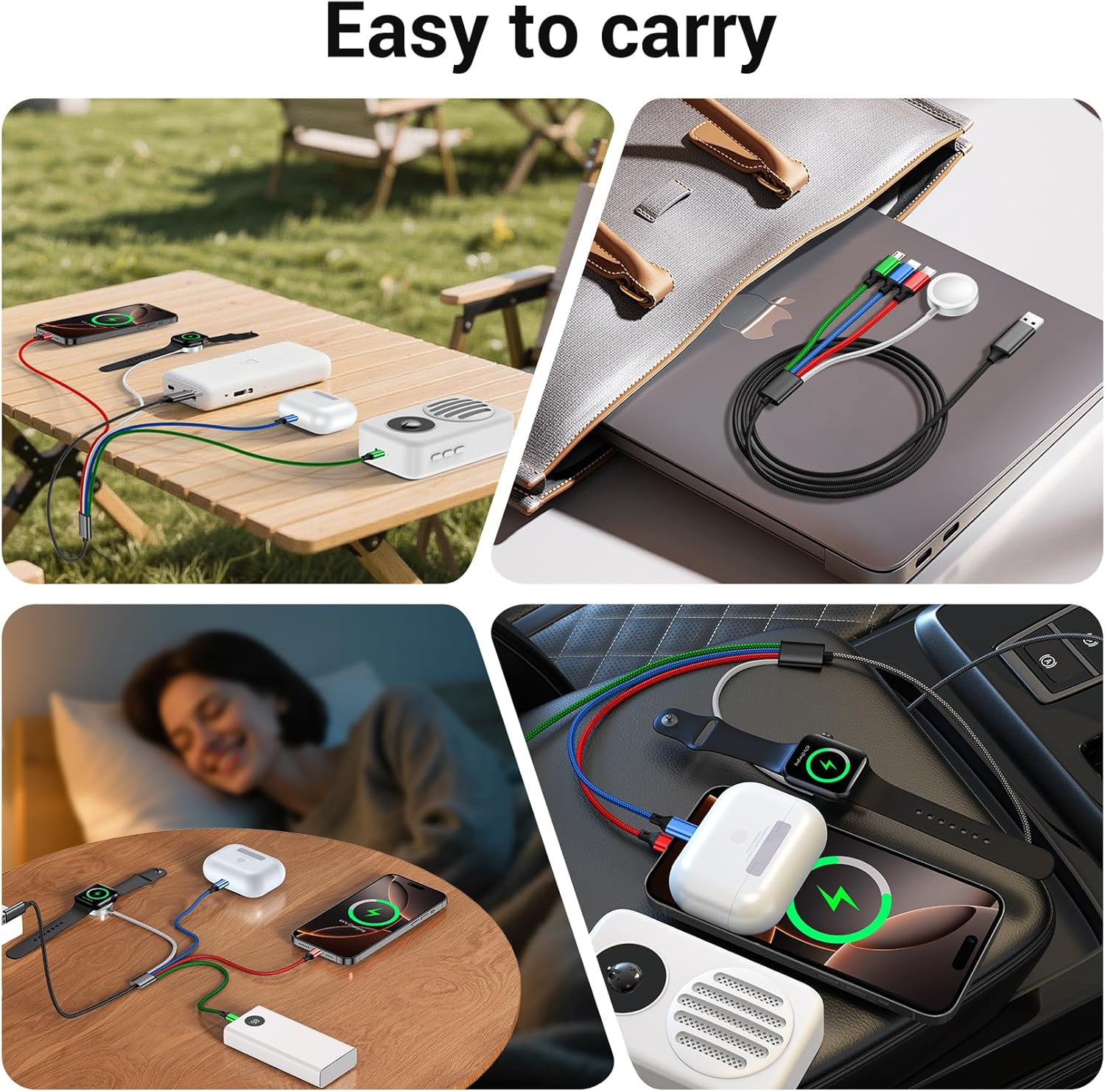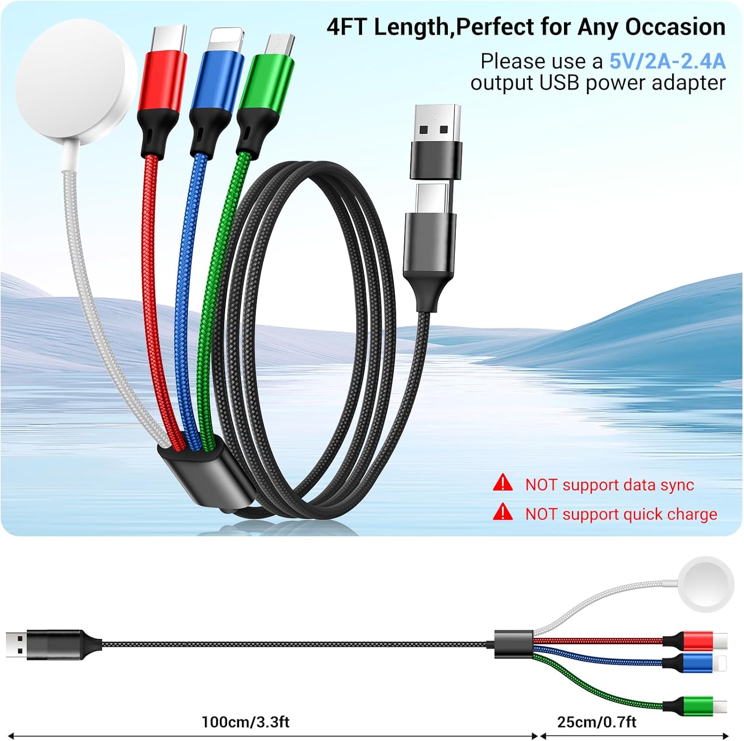 [Universal Compatibility] The multi charging cable is compatible with iWatch Series Ultra 10/9/8/7/6/SE/5/4/3/2/1/Nike+, for iPhone 16/15/14 Plus,16/15/14/13/12/11 Pro Max/,16/15/14/13/12/11 Pro,16/15/14/13/12/11,Mini/SE/XS/XR/X/8 Plus,8/7/6, for Samsung Galaxy S24 Ultra/S24+/S24/S23/S23+/S23/S22/S21/S20/S20+/S20/S10+/S10S9/S9+/S8/S7,LG,Pixel,HTC,Sony,OnePlus,Moto,TWS headphones,Work with XBOx Series,and more.
