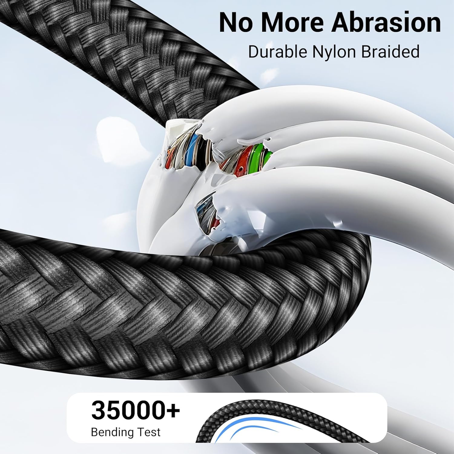 [More Durability] The braided nylon multi charger is more flexible and durable, withstanding over 30,000 bends. The 3D aluminum connector, combined with exclusive laser welding technology, ensures that the metal parts won’t break. The high-quality aluminum housing makes the cable more durable, heat-resistant, and corrosion-resistant.