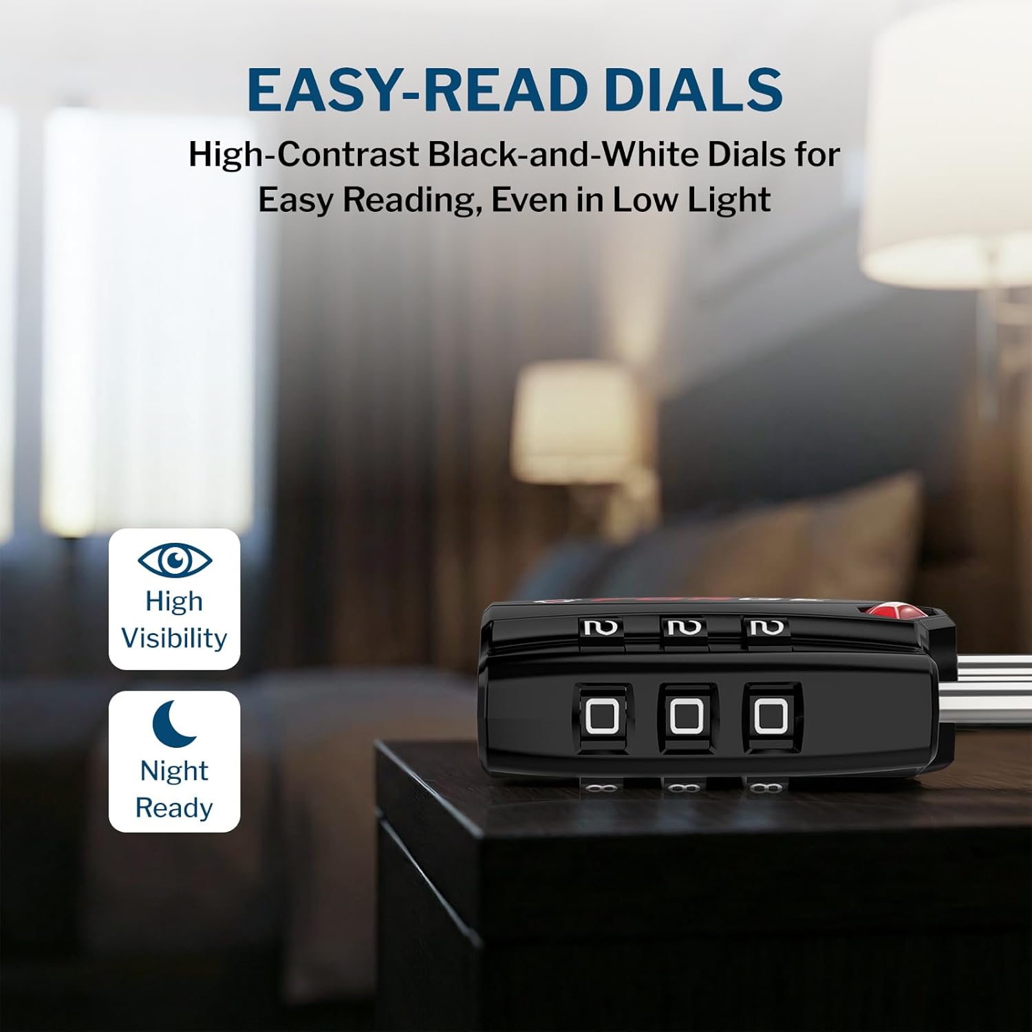 TSA Approved Luggage Lock – travel-ready, fits suitcases, backpacks, and carry-ons without extra bulkTSA Lock with Opened Alert – Red indicator shows when your TSA lock has been inspected for added peace of mindEasy, Error-Free Combination Lock – Smooth 3-digit setting helps prevent mistakes setting
