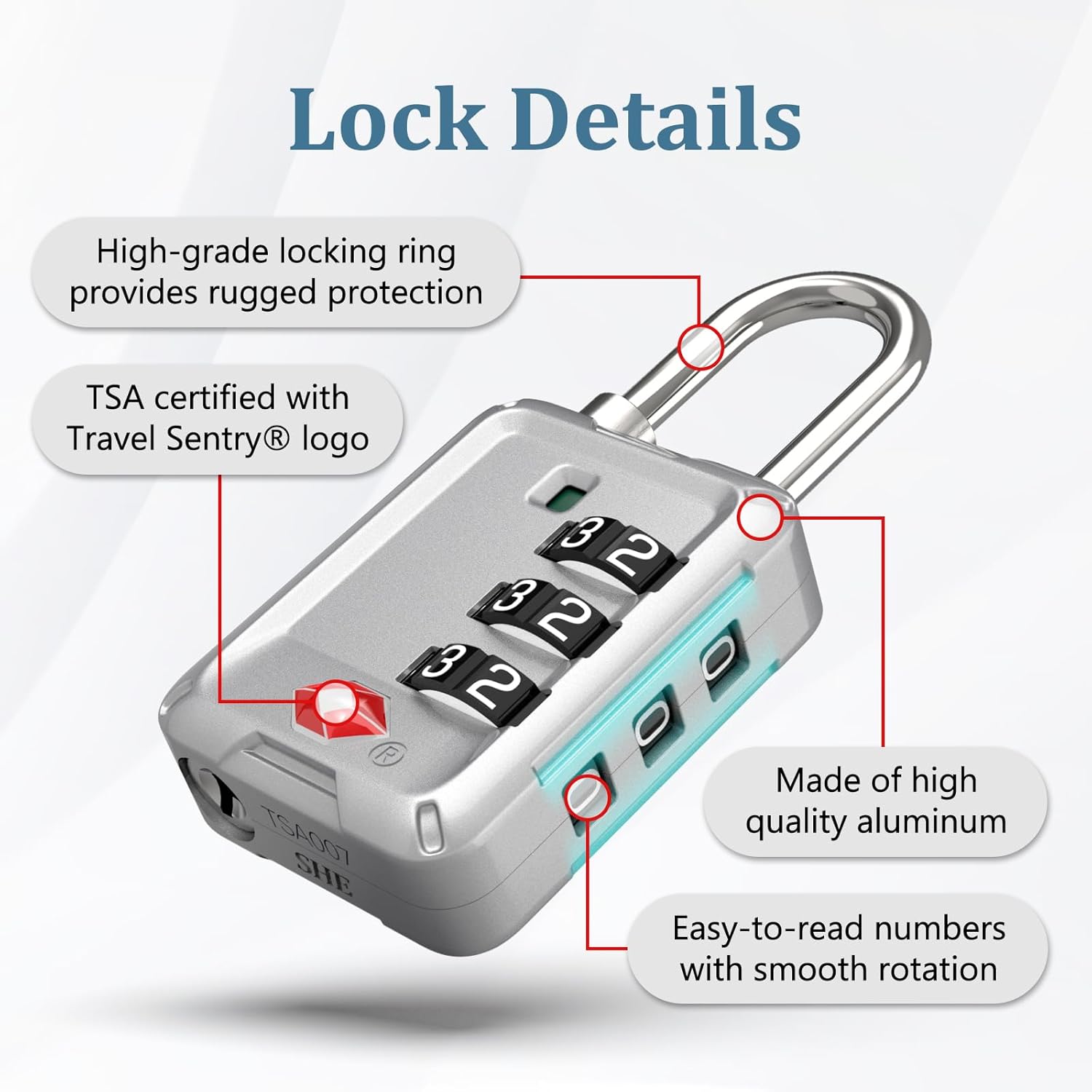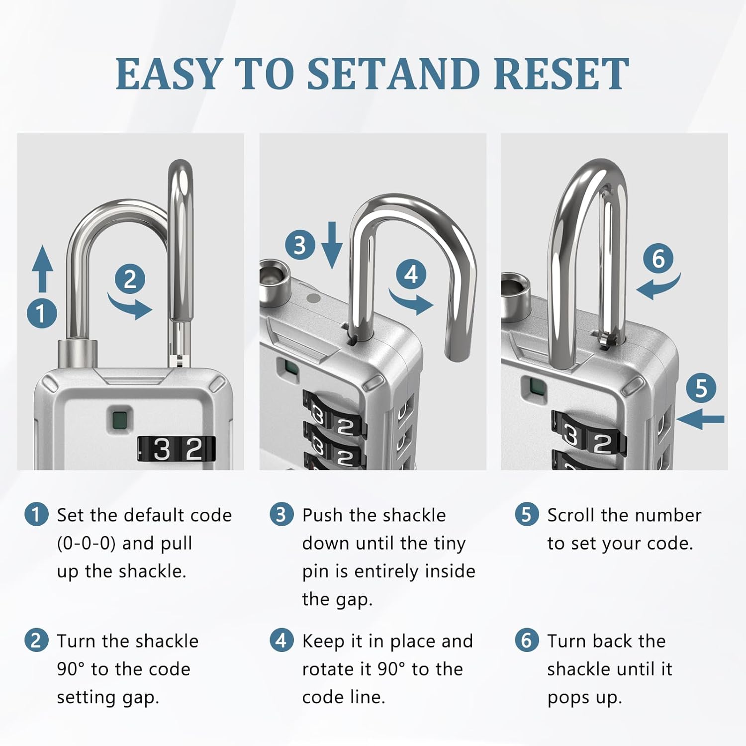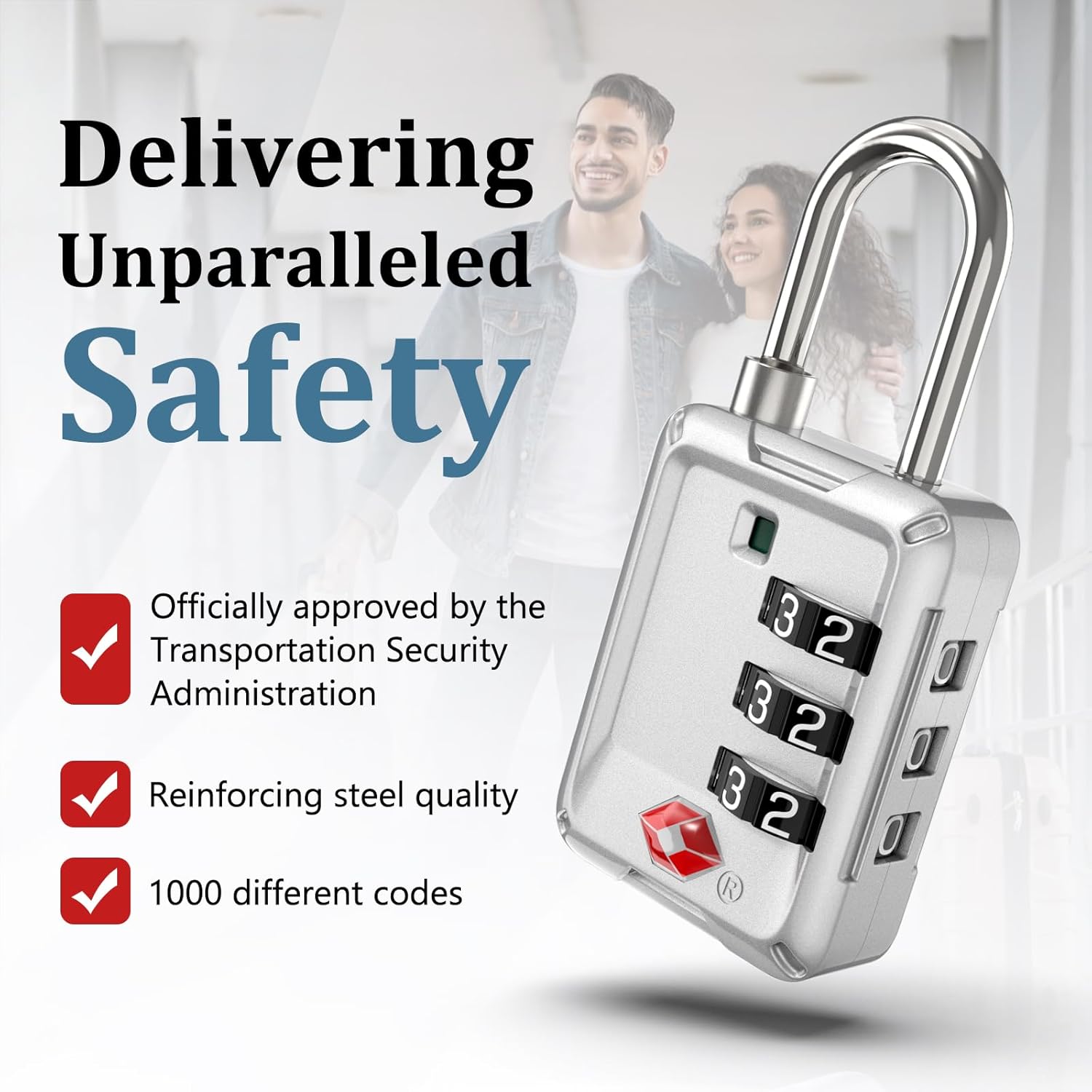 [Versatile uses] This TSA luggage lock can meet your various usage needs, and can be used for luggage lock, backpack lock, travel lock, combination lock for locker, gate locks for outdoor fence, gym locker lock, tent lock and bags and bag lock various usage needs, safe and reliable.