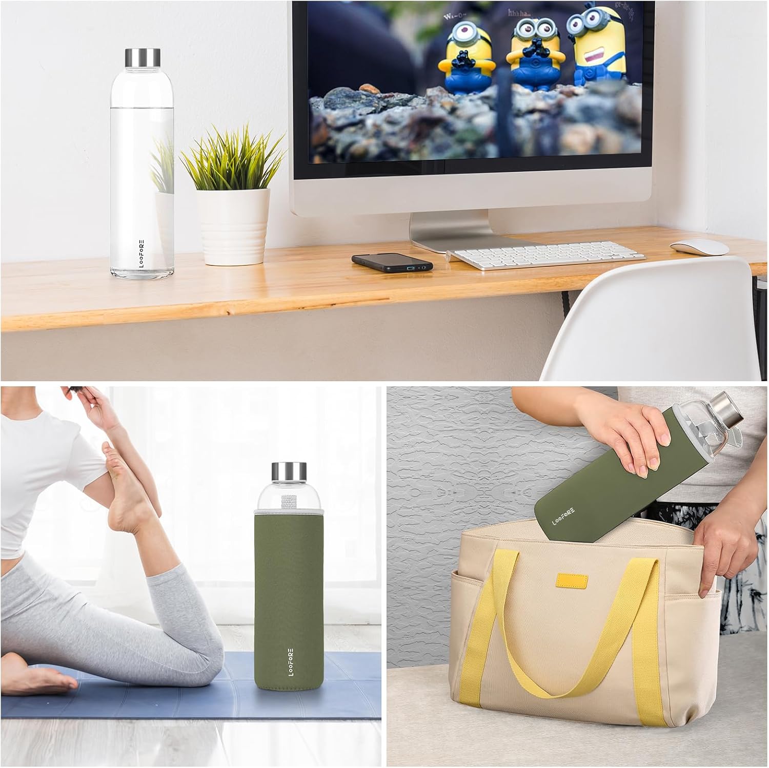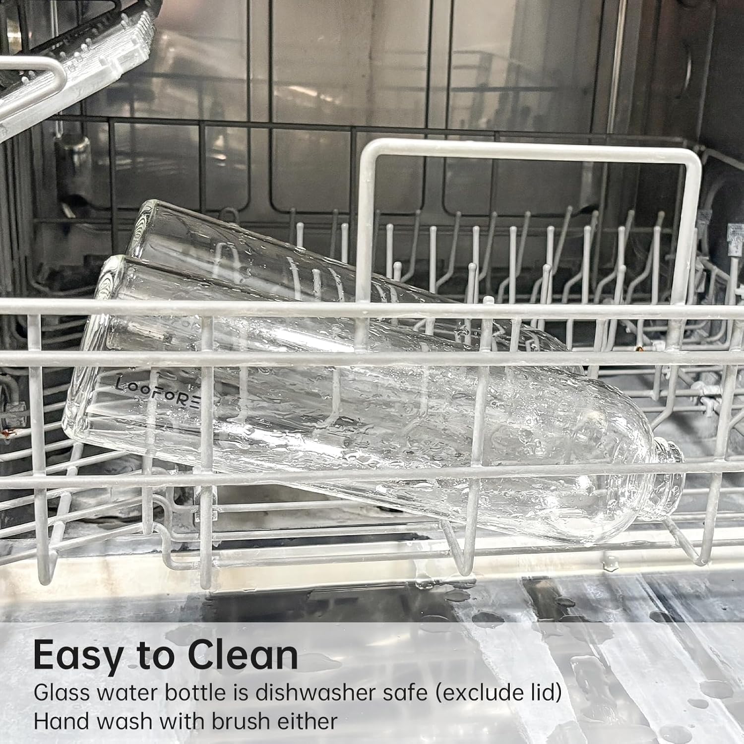EASY TO CLEAN: Our glass water bottles 32 oz is dishwasher safe and has an extra large opening for an ideal drinking experience. The stainless steel cover is easy to clean with a gentle hand wash. Each bottle comes with one free cleaning brushes super-convenient to clean.