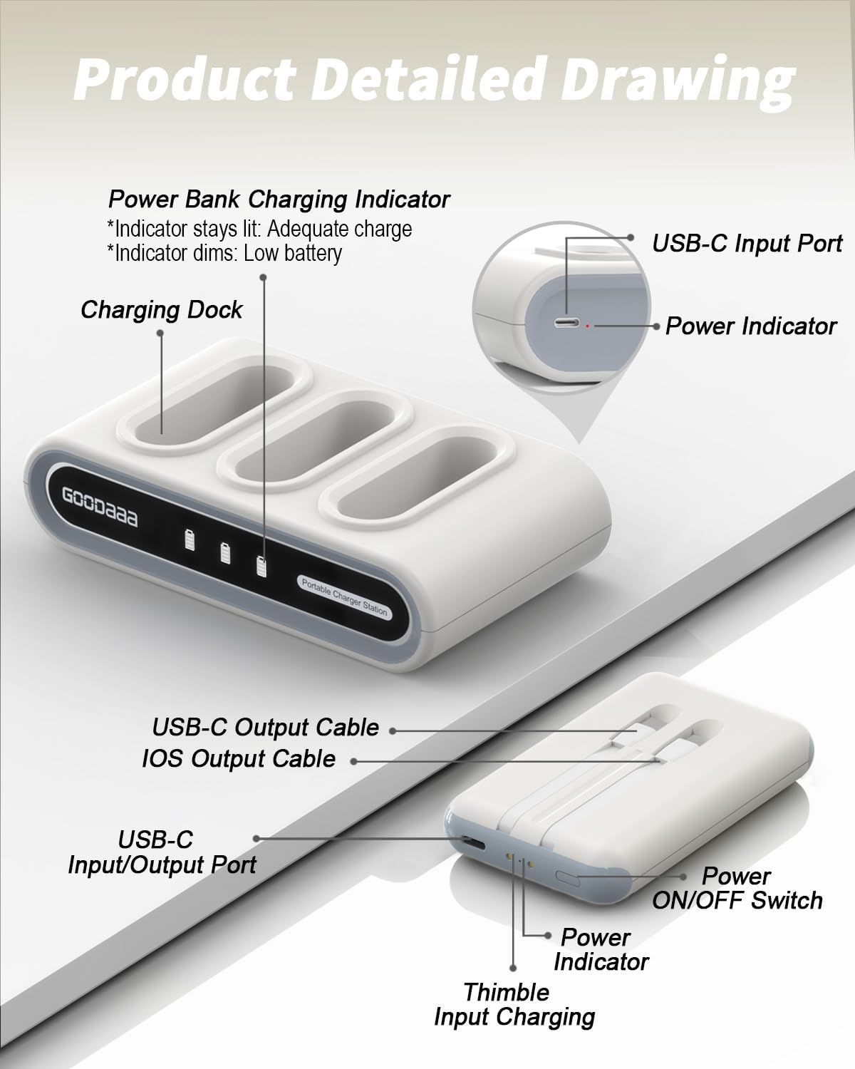 This charging dock is only compatible with the included GOODaaa power bank. Using other brands may damage the dock and pose serious fire hazards.