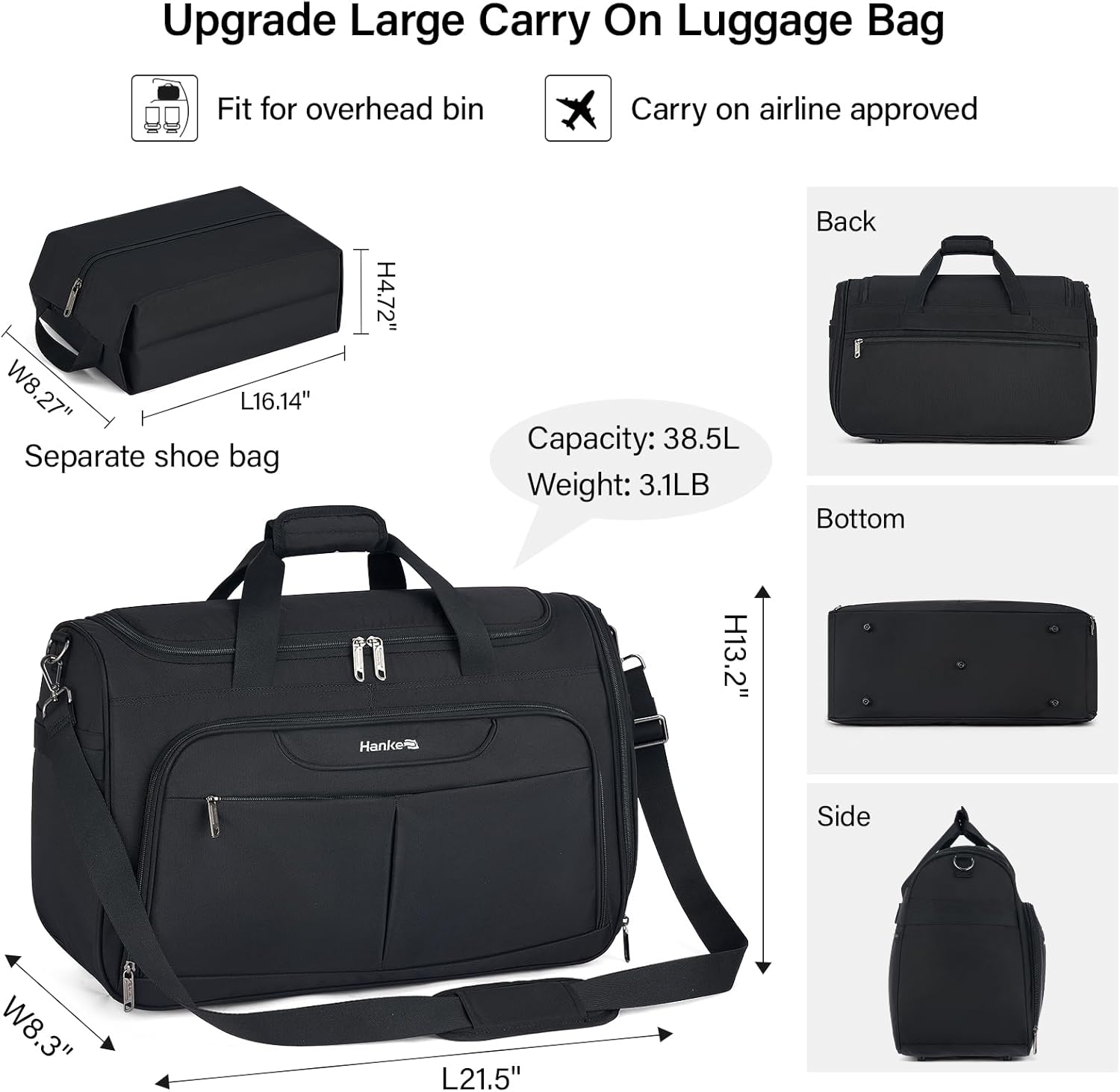 Hanke carry on luggage bags for travel, large foldable duffle bag for travel, softside lightweight travel bag carry on bags for airplanes women, travel tote bags for women men