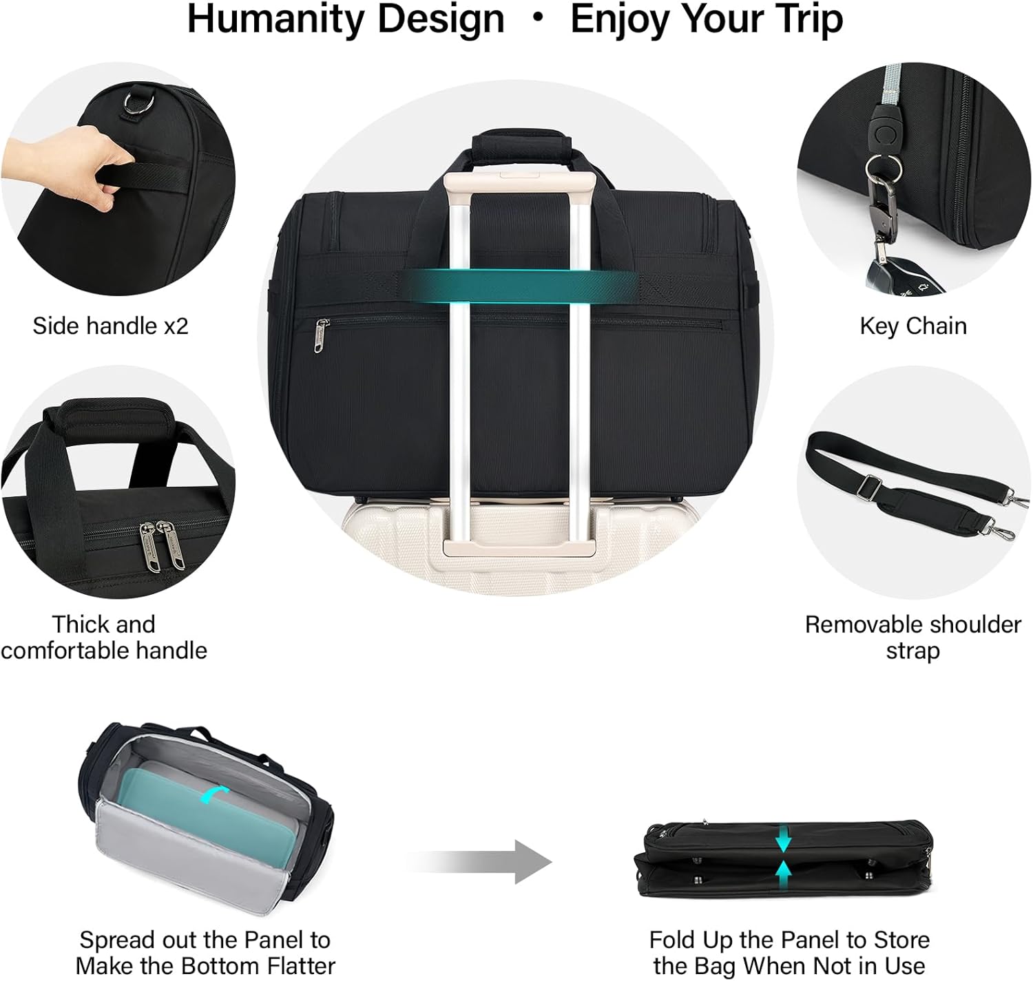 【Airplane Carry On Bag】It’s a large duffle bags with 38.5L,Beyond functioning as a practical carry on duffel bag, it also works perfectly as a weekend bag,overnight bag or cabin bags. It’s a nice travel bags for women and duffle bag for men .Whether you’re traveling for business or pleasure, it’s an ideal travel companion