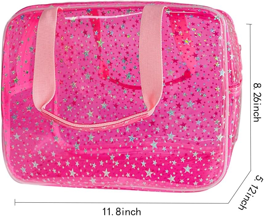 đ·ăMulti Functional and Practicală:Our Transparent star wash bag can not only be used as a storage bag,waterproof bag,gift bag,not only used item bag,but also for cash,glasses,keys,portable batteries,etc.This waterproof and dustproof makeup bag ensures the safety of all items and prevents liquid leakage