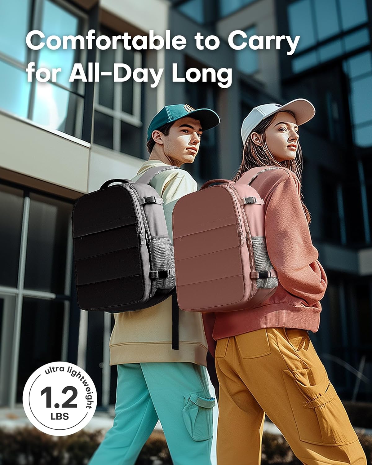 BORN FOR TRAVEL: HOTOR carry-on travel backpack features a flight-approved size, which fits comfortably in overhead bins or under seats. With a 1.2lb weight, a breathable back panel, and padded shoulder straps, this backpack is lightweight and comfortable to carry even all day long. Besides, the luggage strap can attach the bag securely to the suitcase, freeing your hands.