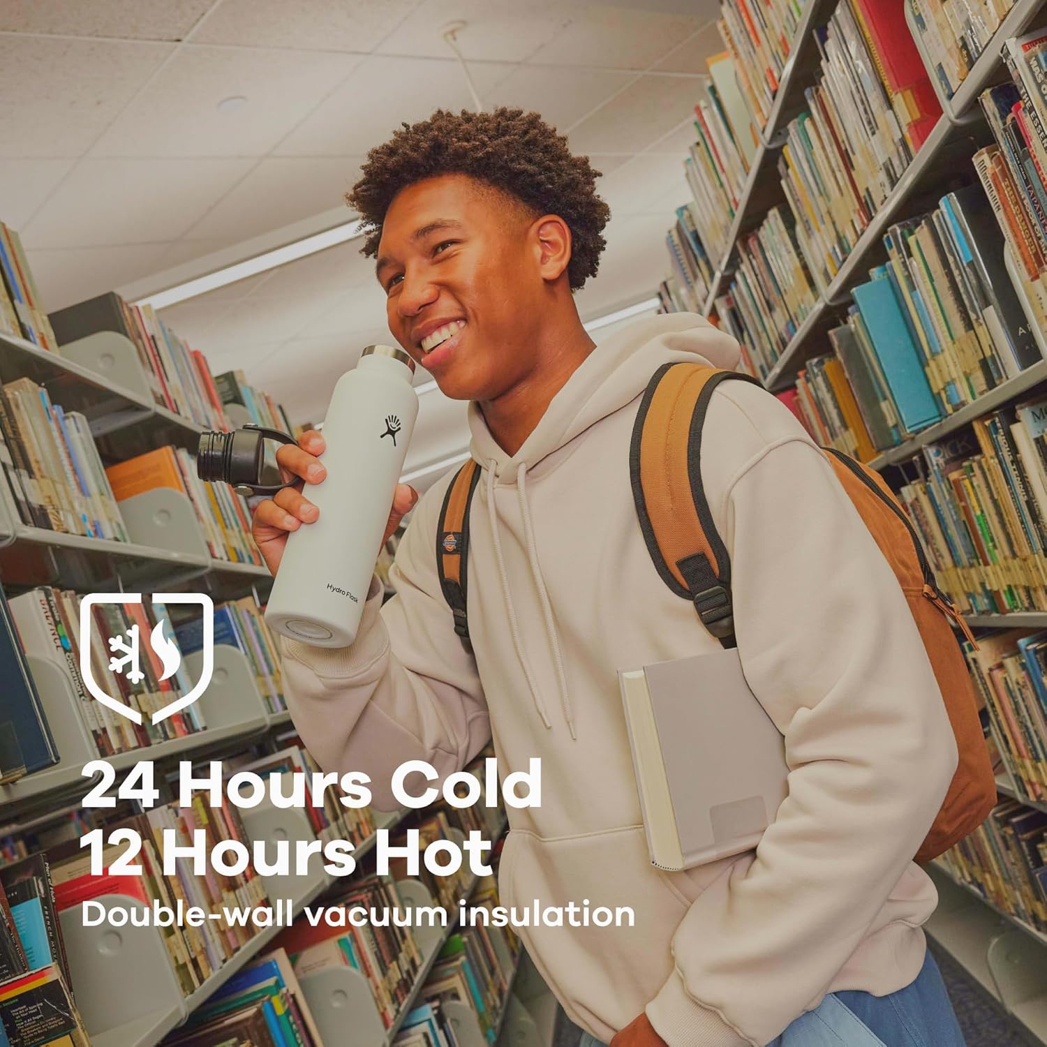 24 HOURS COLD. 12 HOURS HOT: The insulated water bottle keeps drinks cold for 24 hours and hot for 12 thanks to double-wall vacuum insulation. TempShield insulation is designed to be lightweight and efficient temperature retention, keeping contents ready to sip.