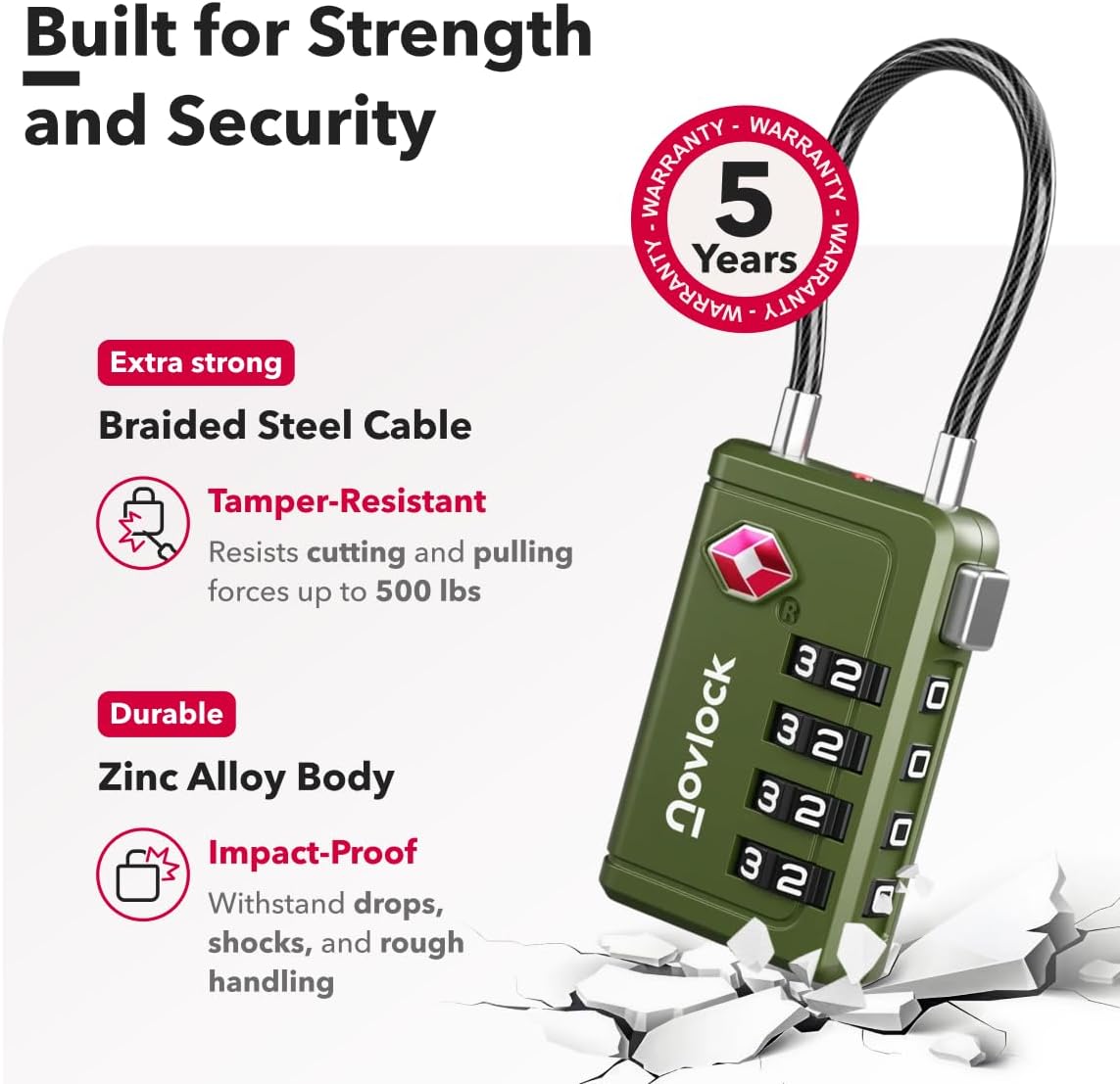 【5-Year Warranty】As a trusted, officially licensed TSA distributor, we’re so confident in the quality of our tsa approved luggage locks that we back them with a 5-year warranty. No questions asked. Travel worry-free with NovLock!
