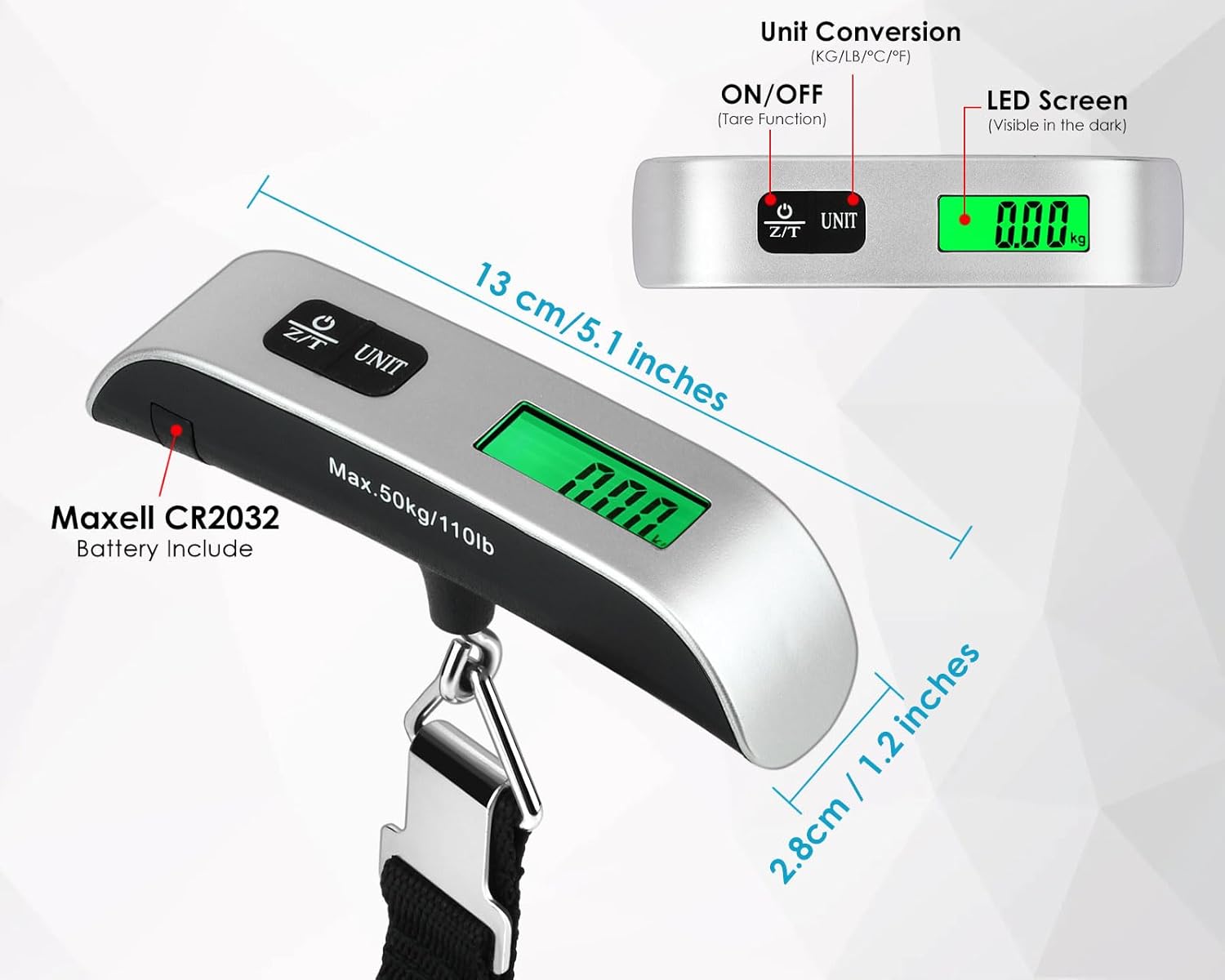 Avoid Unnecessary Costs – The luggage scales for suitcases are one of the packing essentials for travel. They provide accurate measurements of the exact weight of your luggage, enabling you to pack efficiently and avoid expensive overweight baggage fees by instantly measuring the weight of your suitcases or packages