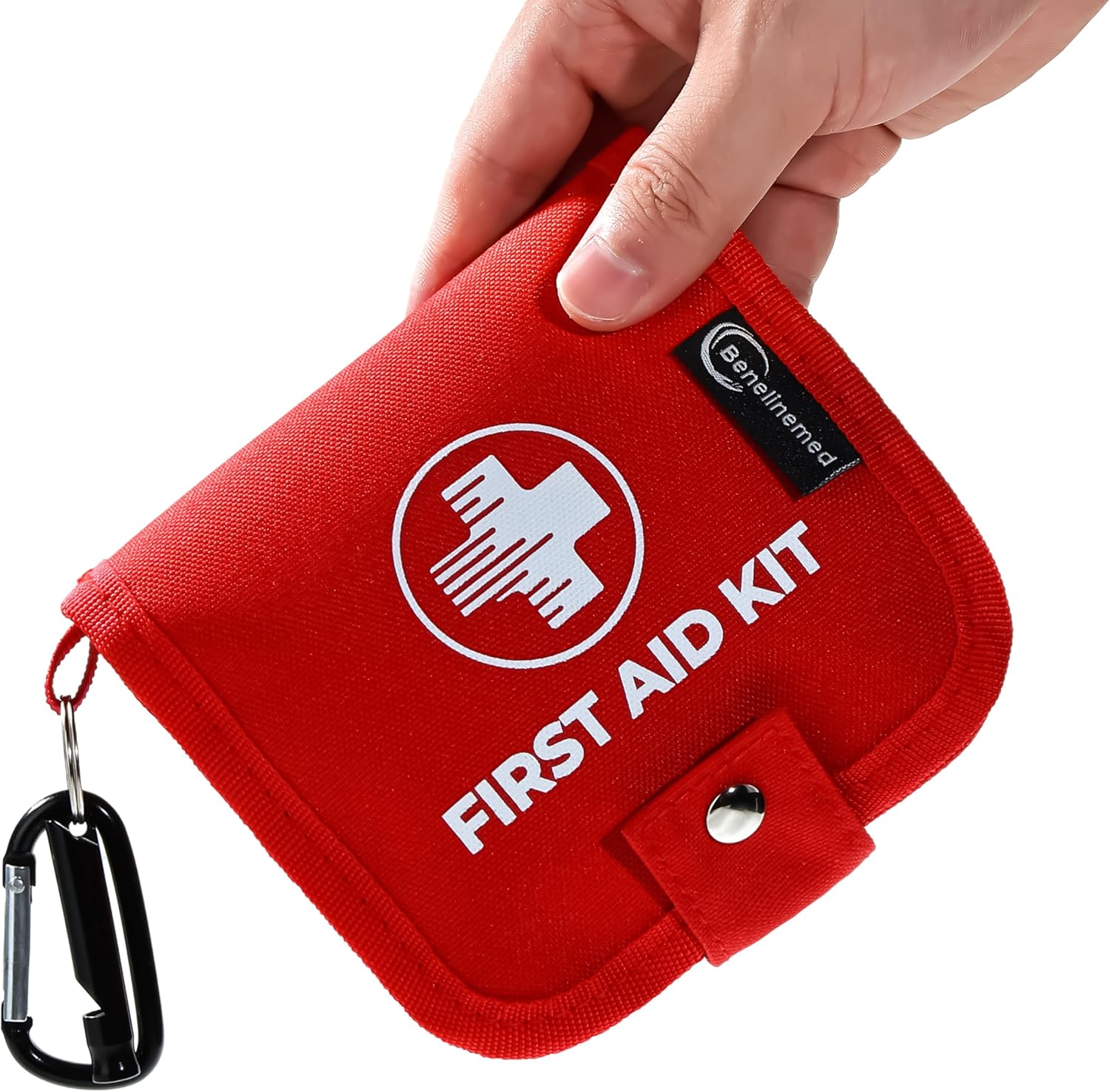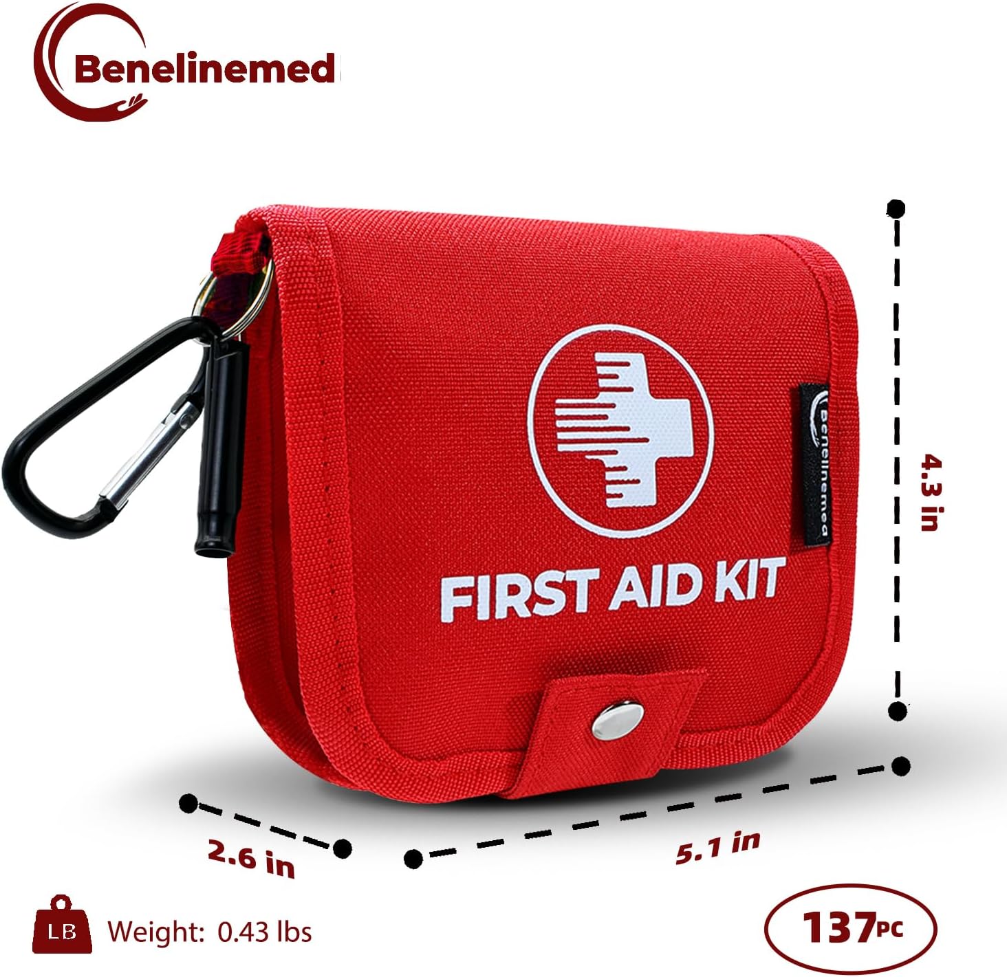 COMPACT & LIGHTWEIGHT: Weighing only 0.43 pounds and equipped with a sturdy carabiner, this small first aid kit seamlessly integrates into your daily carry. Whether placed in a pocket, backpack, or handbag, it remains unobtrusive, ensuring convenient portability