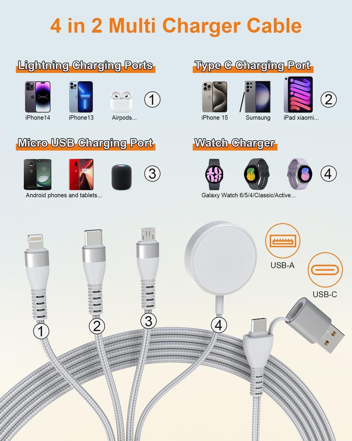 4-IN-2 Multi Charger Cable for Phone and Galaxy Watch
