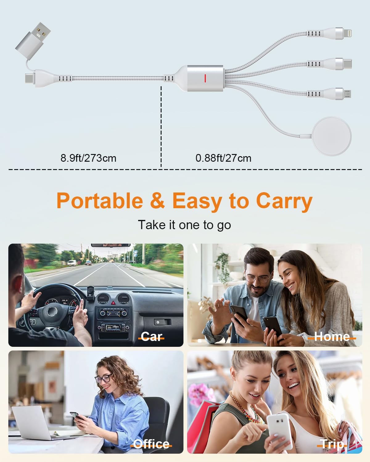 Durable and Reliable + Apple MFi Certified: The samsung multi charger cables are made of ABS+PC and pure copper wire. Tangle-resistant nylon braid material provides longer flex life. The USB A/C to Lightning cable contains an MFI authorized chip, providing 100% compatibility. The extra-long 10-foot length adds convenience and is perfect for remote use at home, in the office, in the car, while traveling, and more