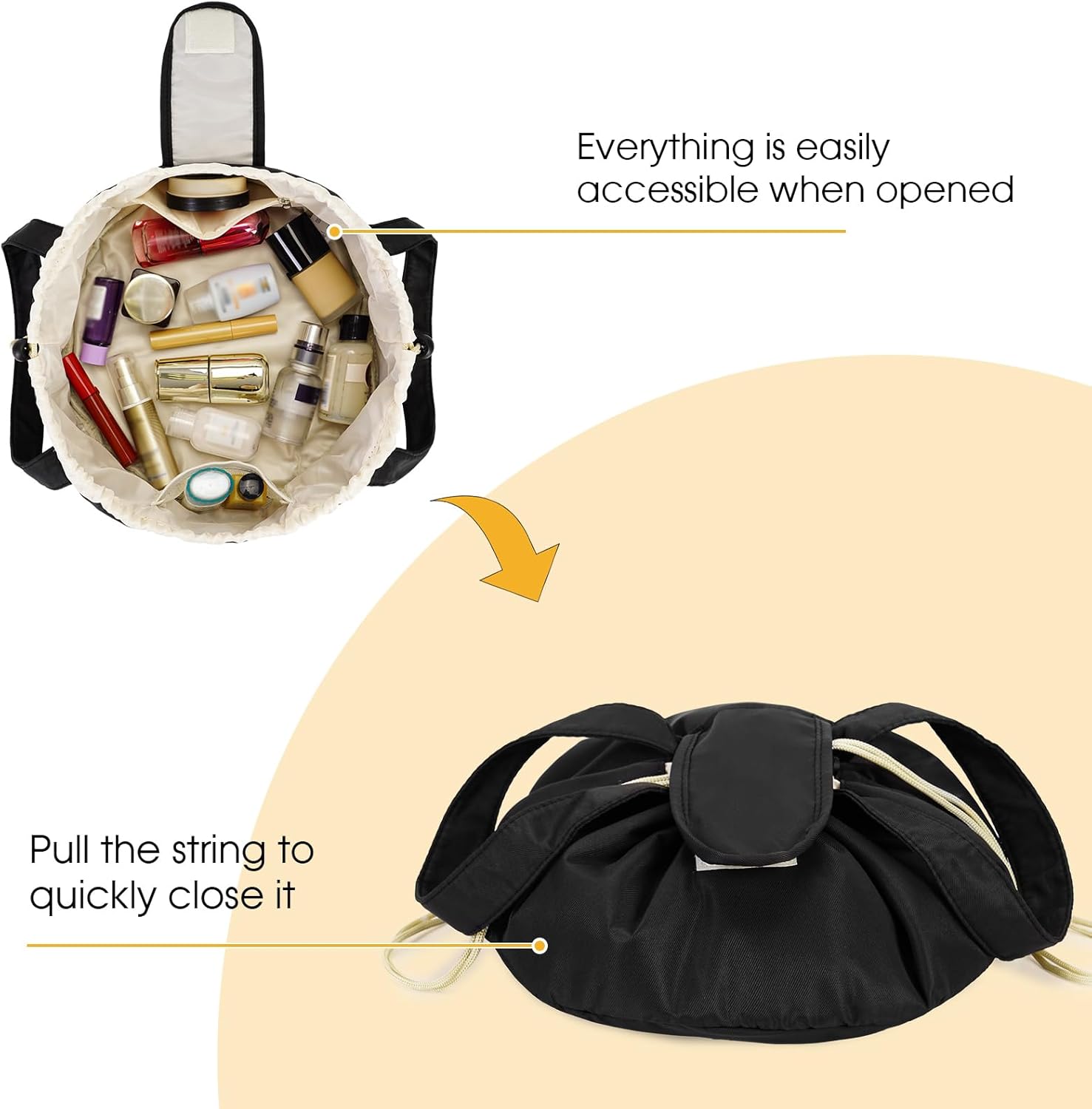Easily Accessible. Everything is easily accessible when opened. Inner zippered pocket and mesh pocket offer quick access to frequent uses items. Just keep all your makeup in one bag and find everything without rummaging around