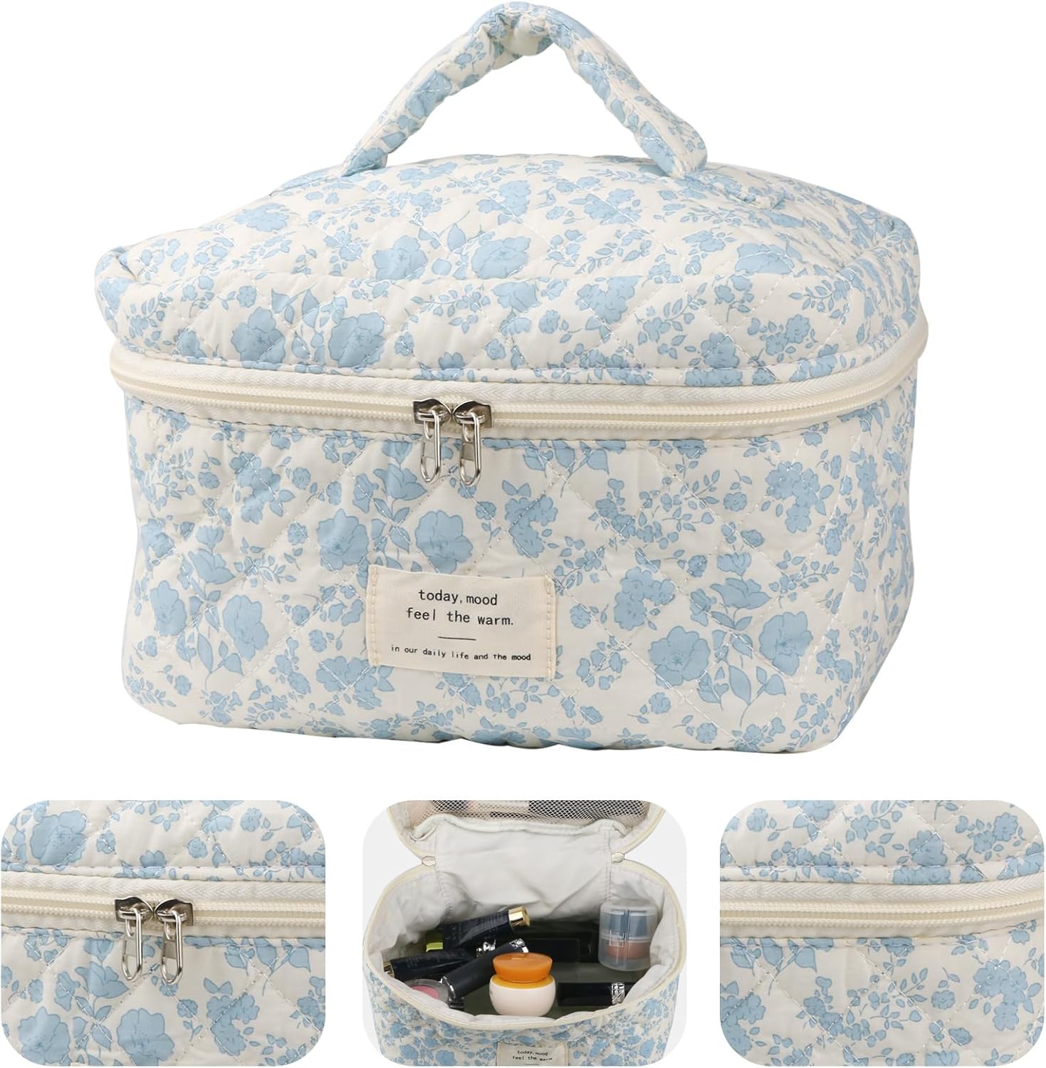 【Design】This makeup bag is designed with a special slot for brushes and has a large storage space. It can hold daily essentials and is perfect for both everyday use and travel.