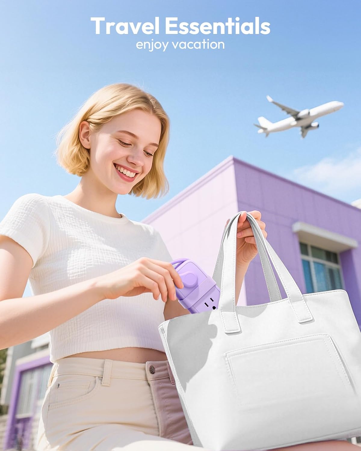 【7 in 1 Travel Power Strip with USB C】: 4 widely AC outlets (2 Type B 3 Prong outlets, 2 Type A 2 Prong outlets), and 3 USB ports can power up to 7 travel devices simultaneously on your desk from a single portable power strip. Extra space between each AC outlet on the compact power strip provides room for larger plugs, outlets are distributed in different sides without blocking.