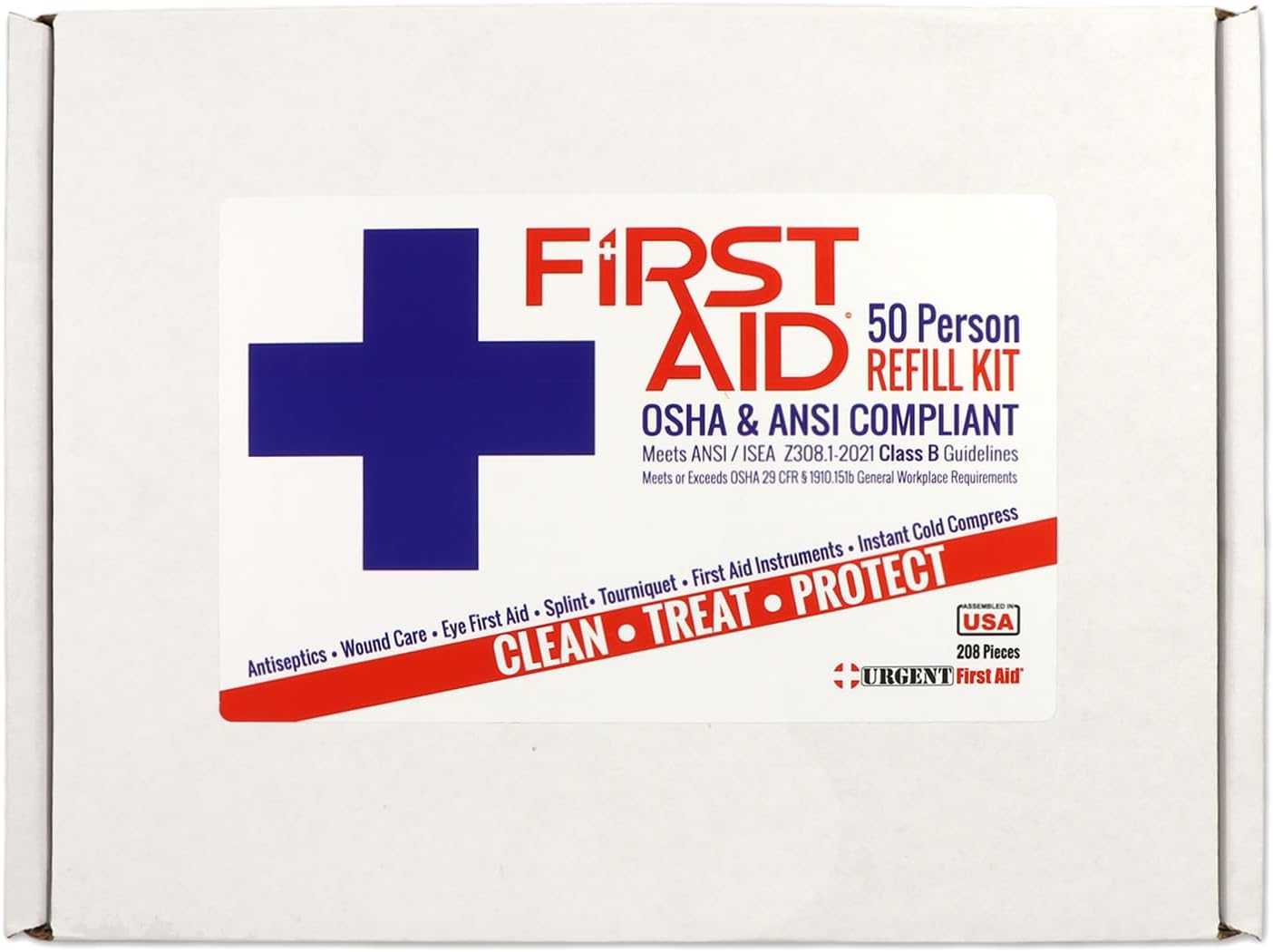 OSHA and ANSI; Exceeds OSHA Requirements and Meets ANSI Z308.1-2021 Class B Standards for Minimum Requirements for Workplace First Aid Kits and Supplies; Serves General Workplaces with up to 50 people
