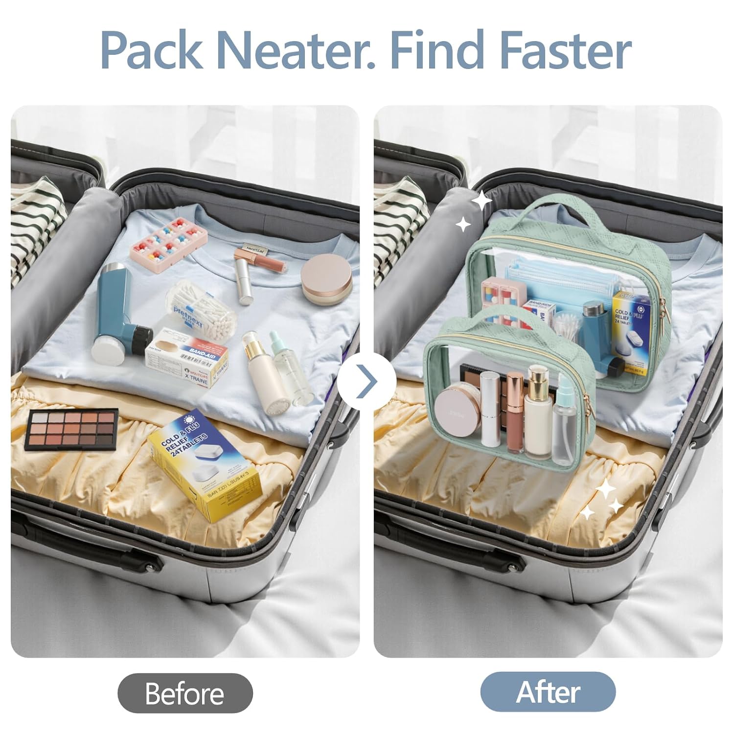 Clear Visibility & Organization: Quickly spot what you need without rummaging; Great for separating categories (e.g., shower essentials in the Large bag, makeup in medium bag); Note: Only the Medium size follows the 3-1-1 liquid rule