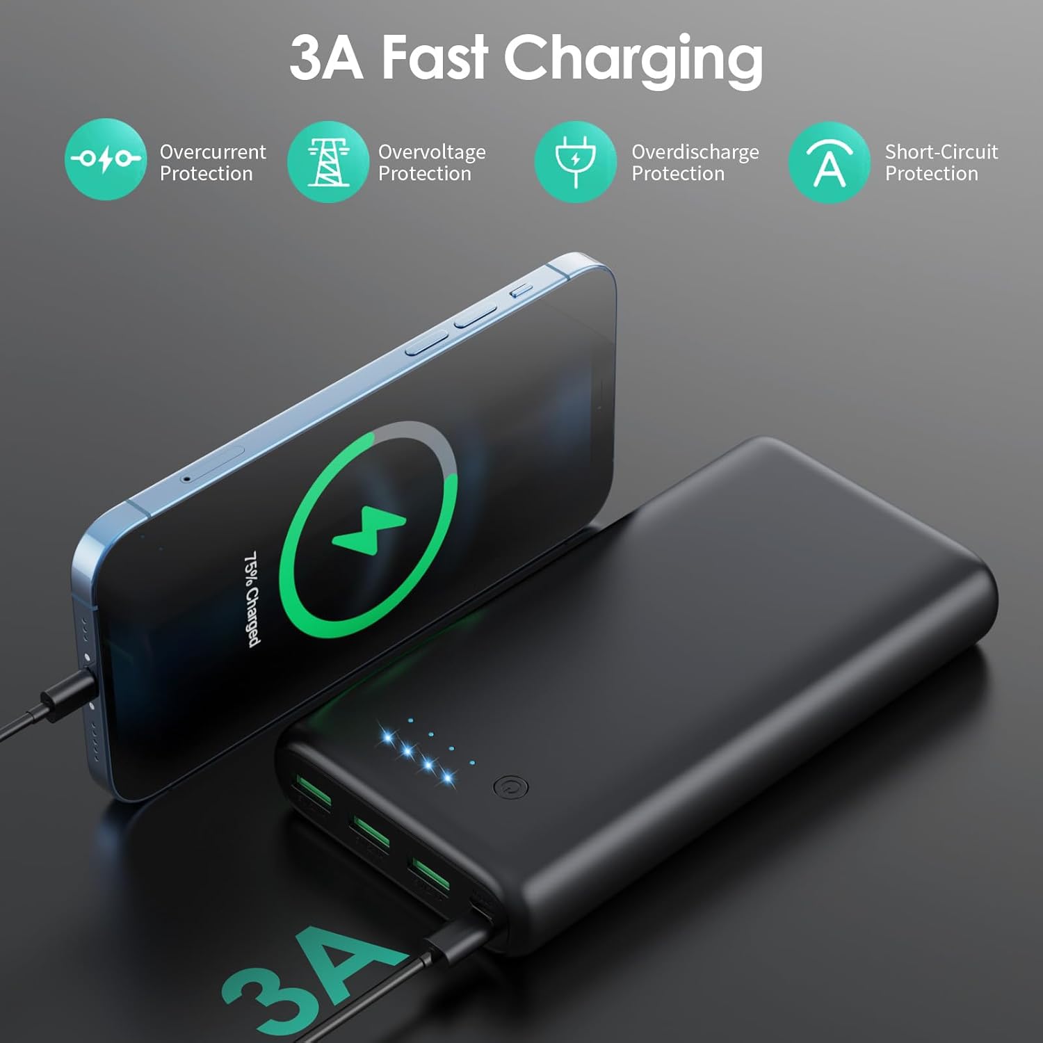 【Portable Charger for Multiple Devices】Designed for multiple devices, this portable charger features 4 outputs, including1 USB-C and 3 USB-A outputs. Charge up to 4 devices simultaneously, Suitable for business, travel, going out.