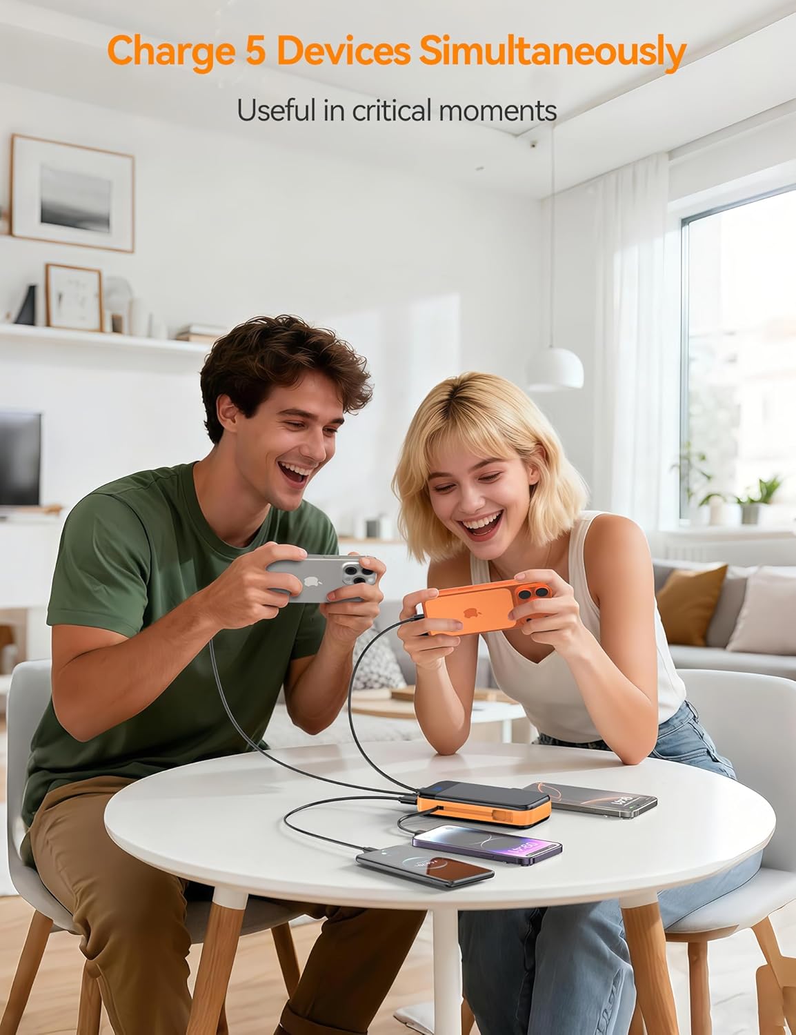 ๐ใ๐๐จ๐ฐ๐๐ซ ๐๐ฉ ๐ญ๐จ ๐ ๐๐๐ฏ๐ข๐๐๐ฌ ๐๐ญ ๐๐ง๐๐ใLENGSUM battery pack charger portable keeps everyone topped up. With 5 total outputs (including the 2 integrated cables), you can charge up to 5 devices at once. When it’s time to refill, choose what’s handy: 3 inputs (iOS, USB-C, or Micro-USB) make recharging flexible and convenient