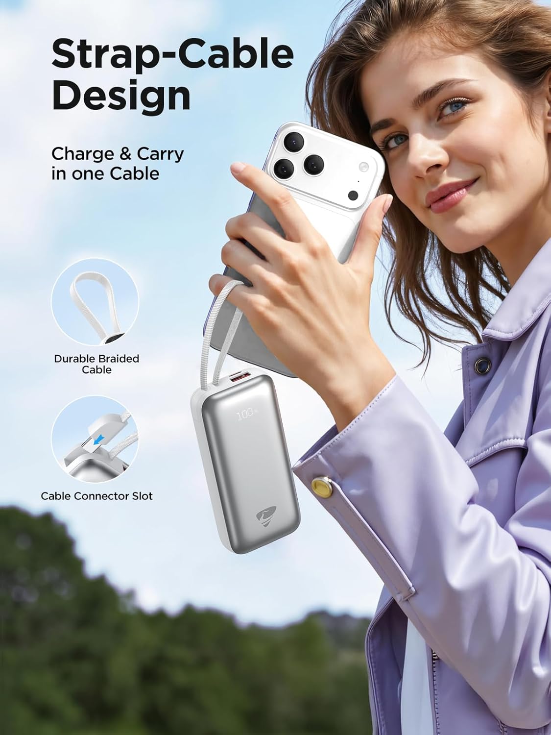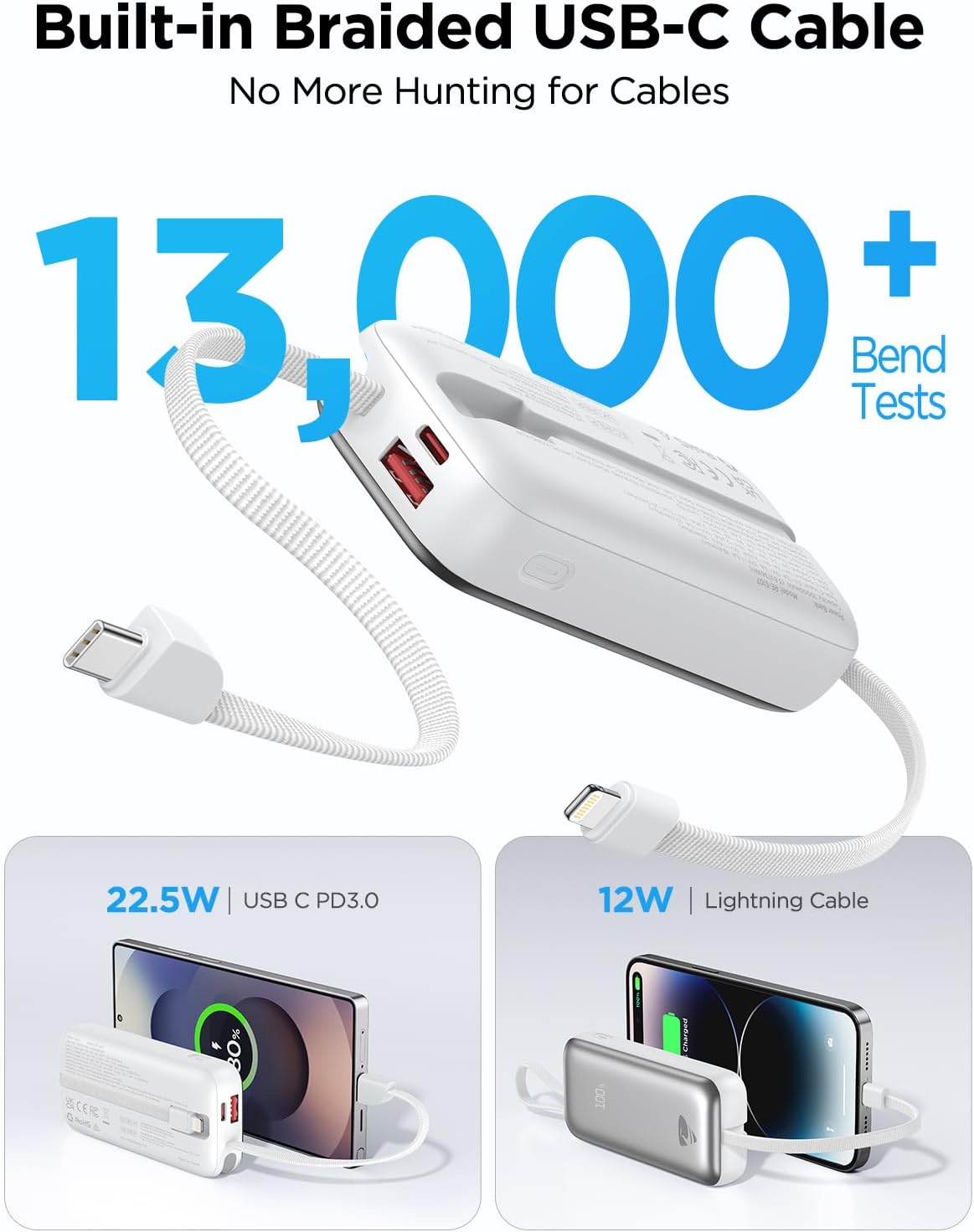 【Large Capacity & Intelligent Display】: This portable charger with built in cable has a large capacity of 10000mAh, which can easily meet the charging needs of multiple devices. Equipped with an intelligent LED display, which accurately shows the remaining power and charging status, allowing users to keep track of the charging situation at all times