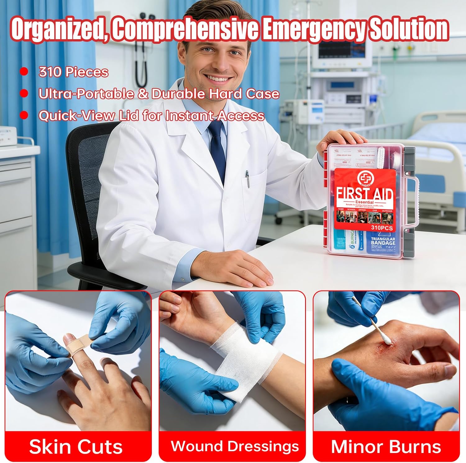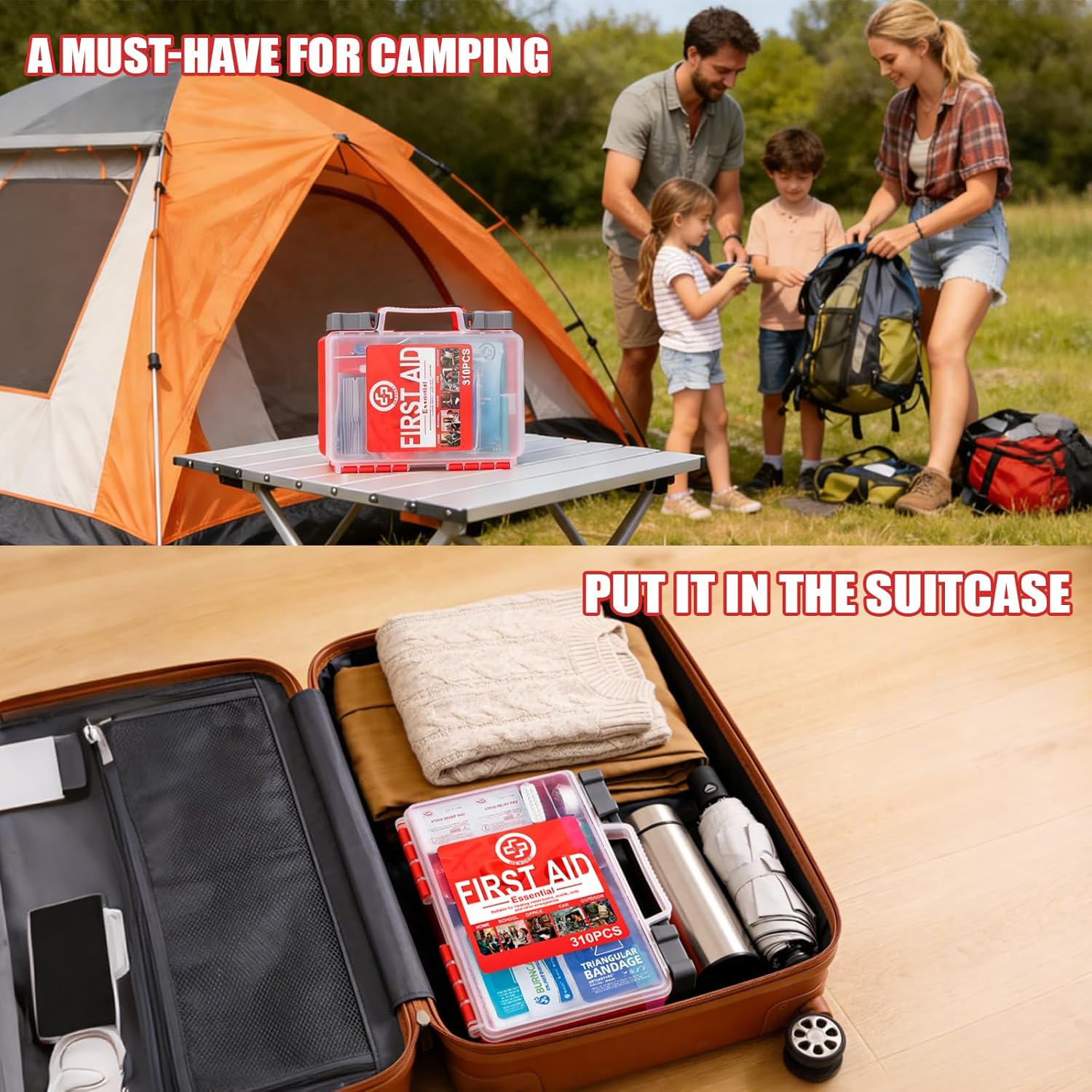 Most components have a 3-year shelf life when unopened, while some items have a shelf life of 5 years. With 310 pieces, this is a comprehensive, medium-capacity family first aid kit designed to meet the needs of families with 6–10 members. It is equipped to handle common household emergencies such as burns, cuts, and abrasions. All items are organized in a portable case for easy storage and quick access in urgent situations.