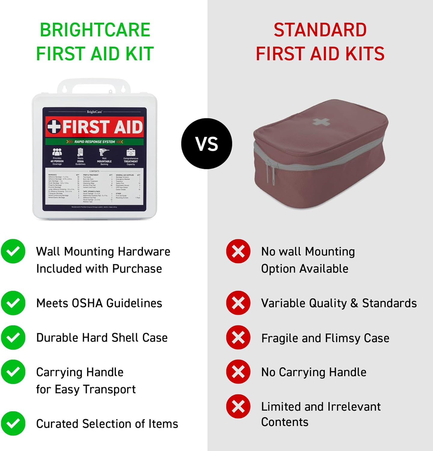 Durable Hard Shell Protection: Designed to stand up to the demands of large businesses, the BrightCare First Aid Kit features a water-resistant, and smash-resistant hard case—keeping its contents secure and ready for use at a moments notice.
