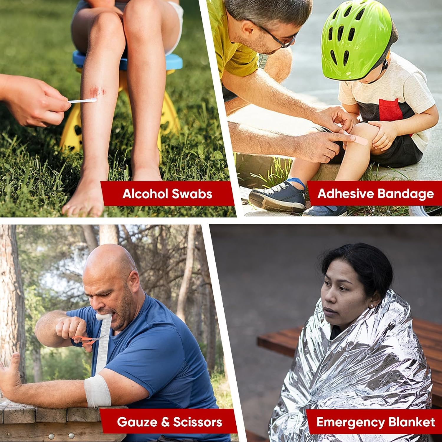 [WIDE APPLICATIONS] The 300pcs travel first aid kit includes a detailed instruction manual for the effective use of supplies, it is essential for home, car, dorm, office, and outdoor activities such as boating, hiking, camping, and rock climbing. With multiple first aid supplies, it is suitable for coping with various emergencies in both daily scenarios and wilderness expeditions.
