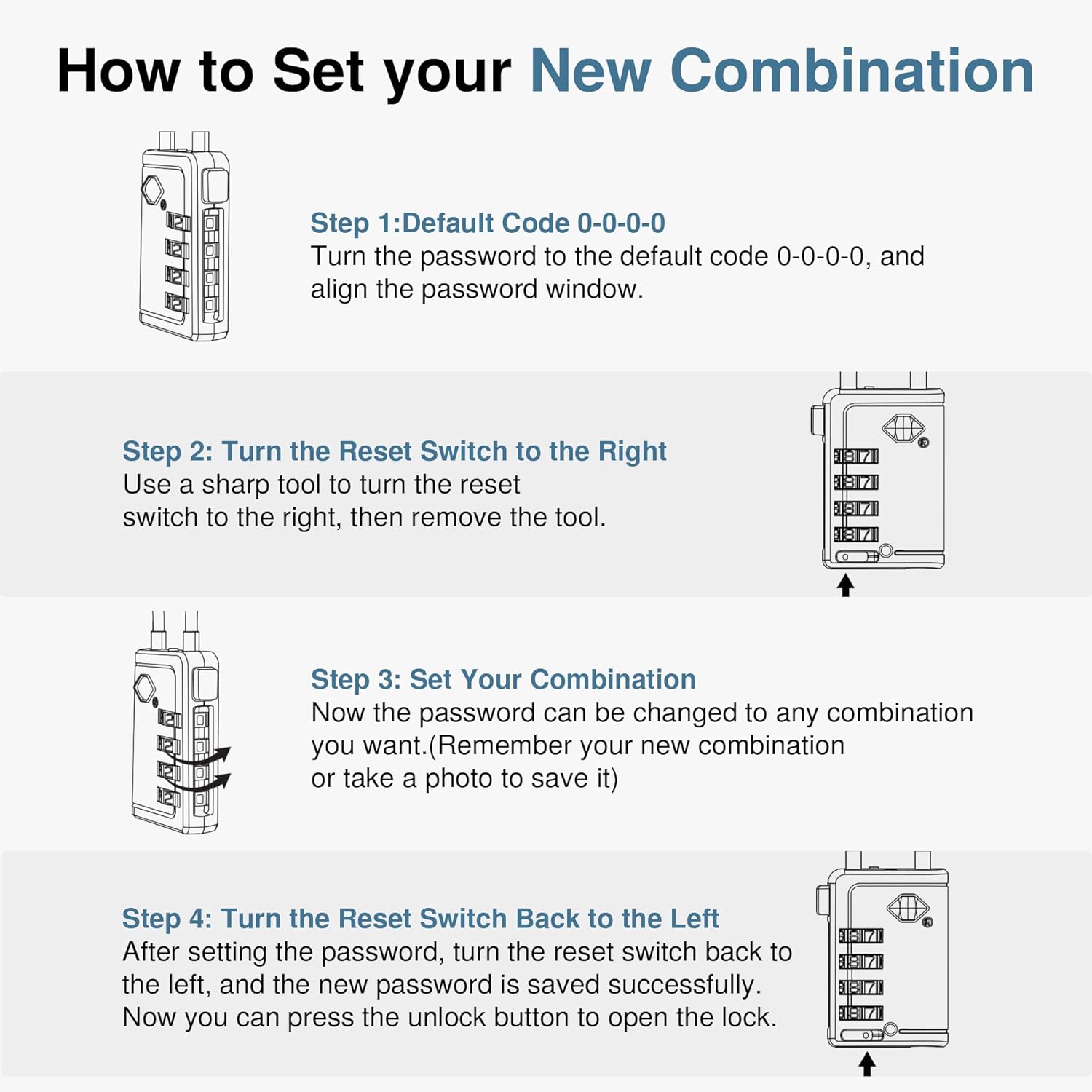 The fact that this keyless 4-digit combination luggage locks offer 10,000 unique combinations makes it ten times longer to decode than 3-digit locks, giving you peace of mind. Suitable for suitcases, laptop backpacks, tents, toolboxs, gym lockers and more.