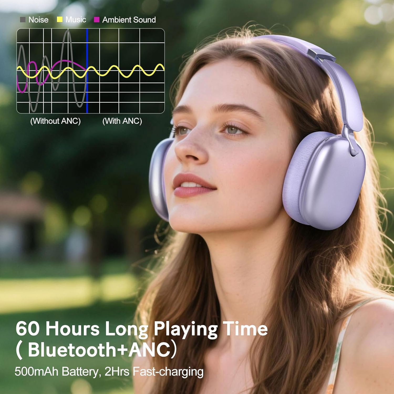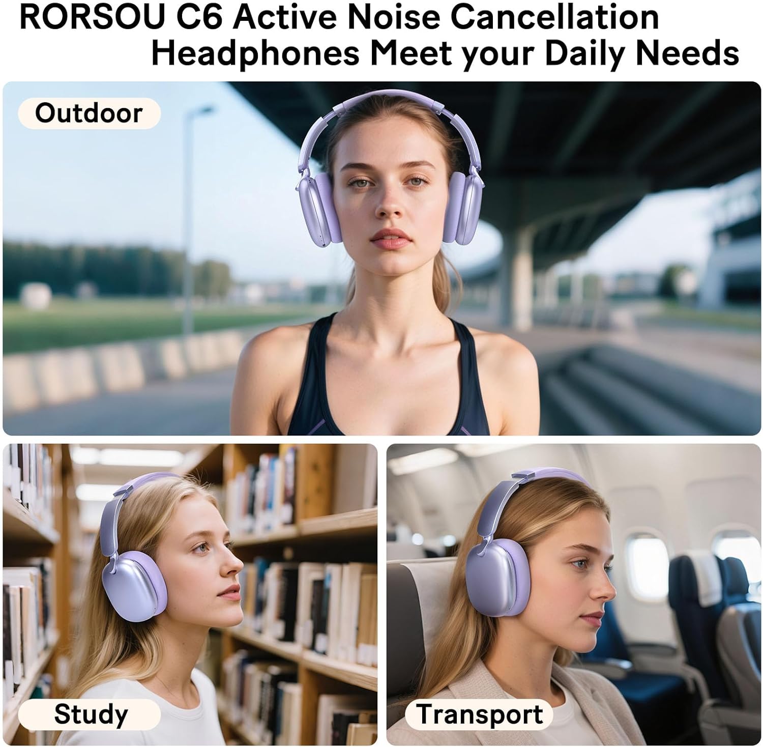Hi-Res Sound: Equipped with 40mm dynamic drivers and a frequency response range of 20Hz to 20kHz, C6 over ear noise cancelling headphones deliver high-fidelity audio with deep bass, rich mids, and crisp highs. Hear every detail and make every note come alive—ideal for travel or relaxing at home.