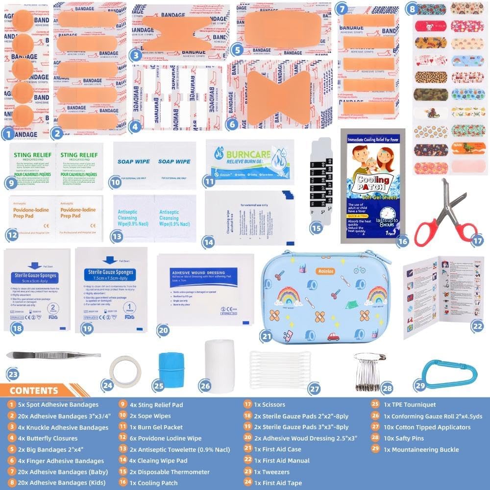 Small-First-Aid-Kit-for-Home-Car-Travel-Camping-Hiking-Sports, Mini Cute Medical Emergency Kits Fits into a Purse, Diaper Bag & Backpack, Convenient to Carry Travel Must Have (RAINLOS)