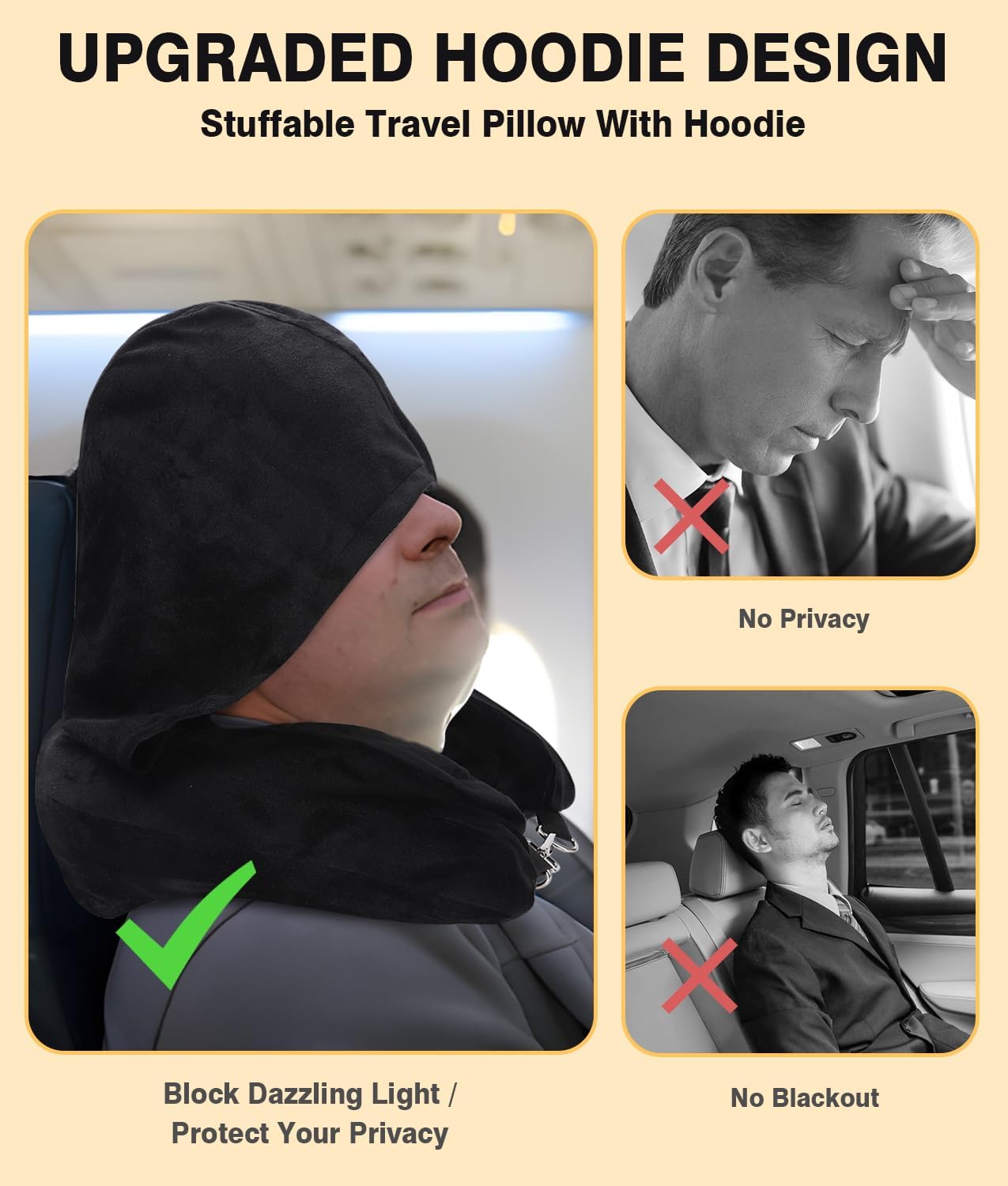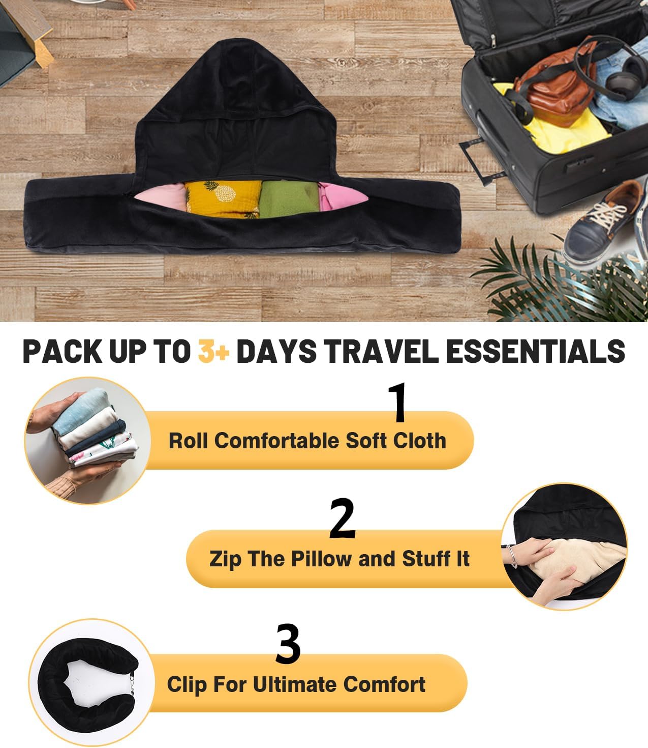**Transform Your Travel Experience**: Introducing the Stuffable travel Neck Pillow Case, your go-to travel companion! Not just a neck pillow with hood, but also a smart storage solution – fill it with clothes, you’ve got yourself a cozy neck pillow for your adventures!