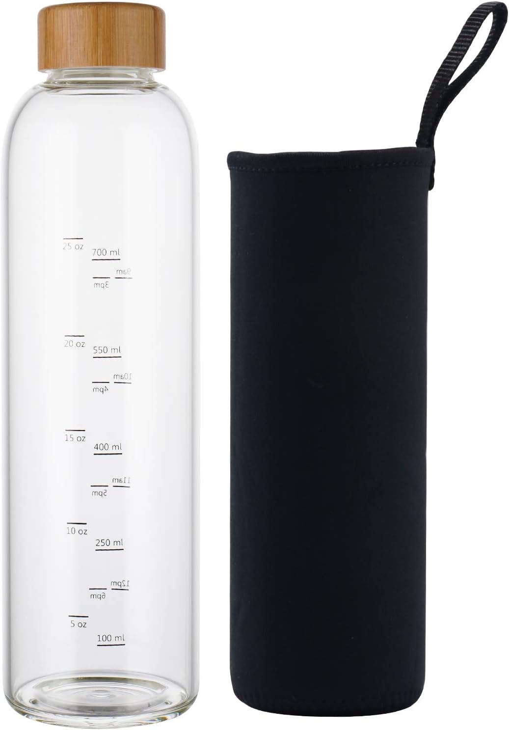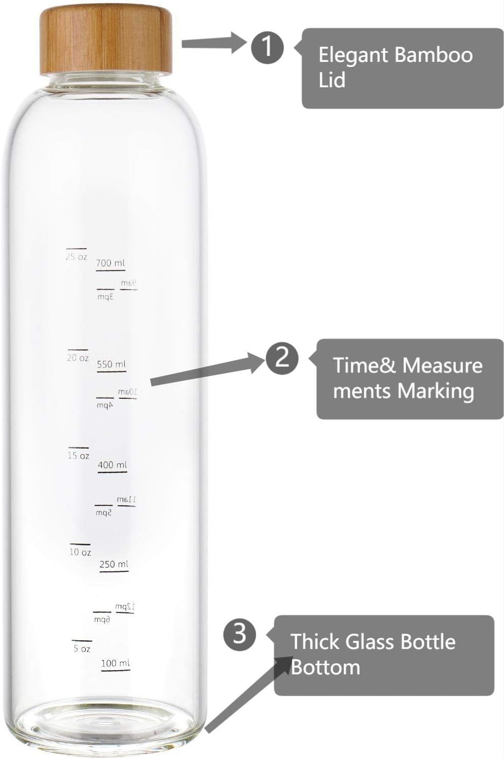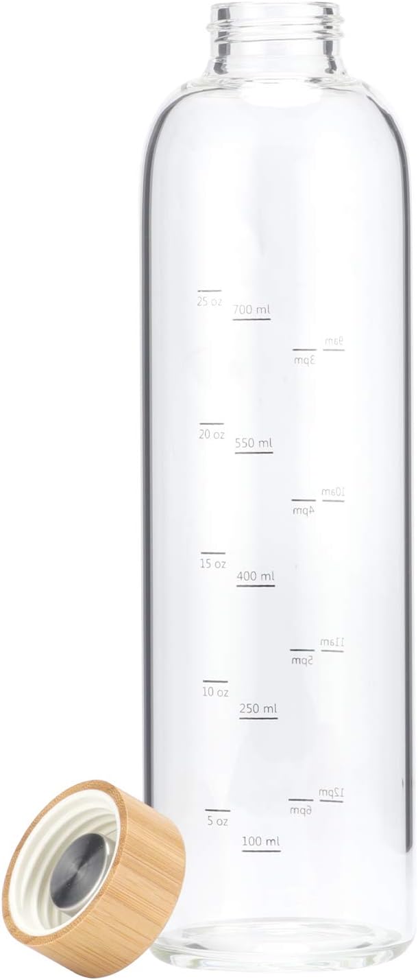 Glass Drinking Water Bottle with Times to Drink: Sunkey large glass water bottle 1 liter with time and measurements markings helps you to monitor and increase your daily water intake.