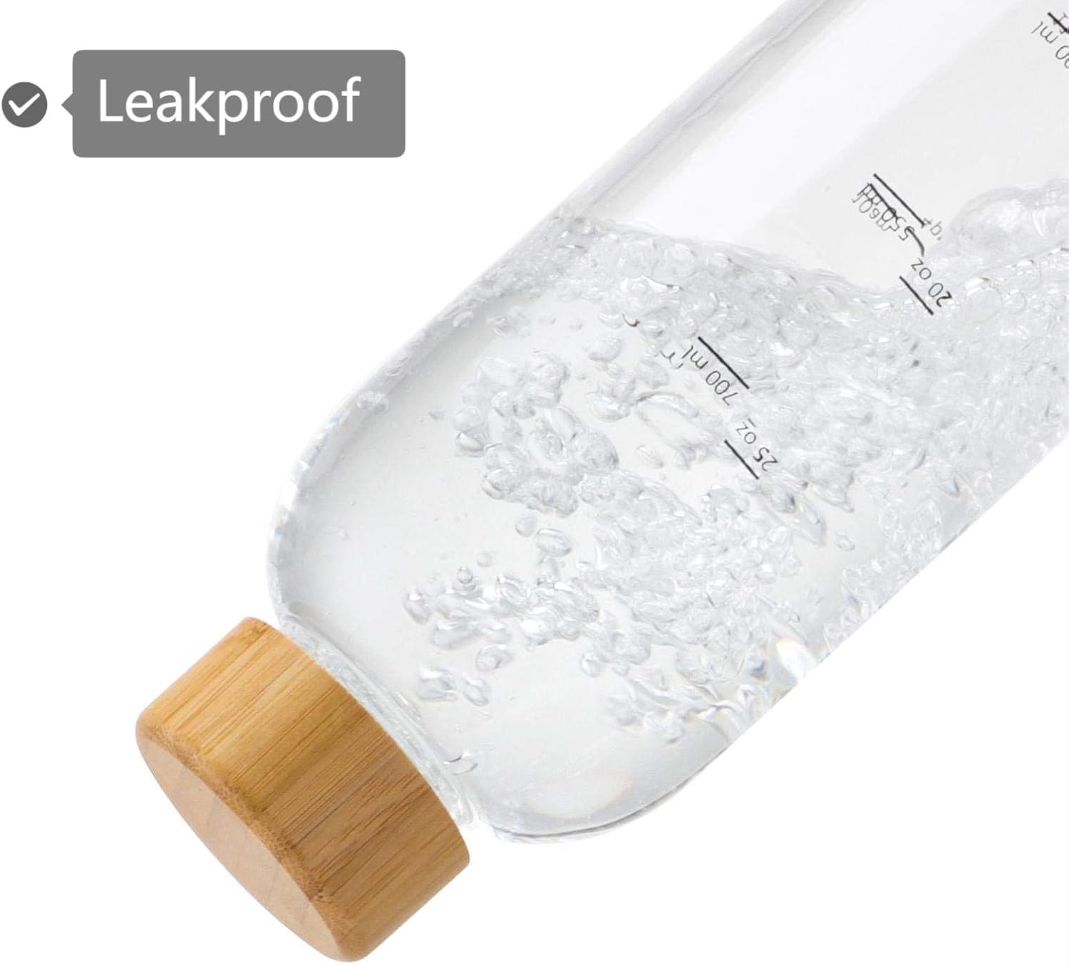 Safe, Reusable, Leak proof: Stylish bamboo lid with 18/8 stainless steel and silicone ring inside, prevents leakage and water from touching plastic. Perfect for natural spring water or mineral water.