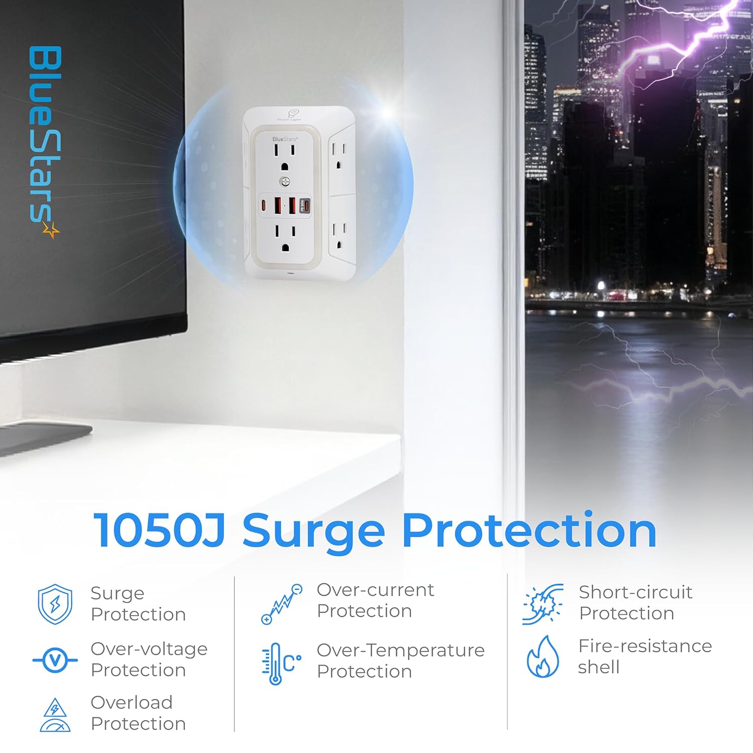Overload & Surge Protection: This power strip is equipped with 1050J surge protection, as well as safeguards against overloads, short circuits, and over-current. Featuring a built-in circuit breaker, the ON/OFF switch automatically shuts off to protect your valuable electronics, ensuring a secure and dependable charging experience.