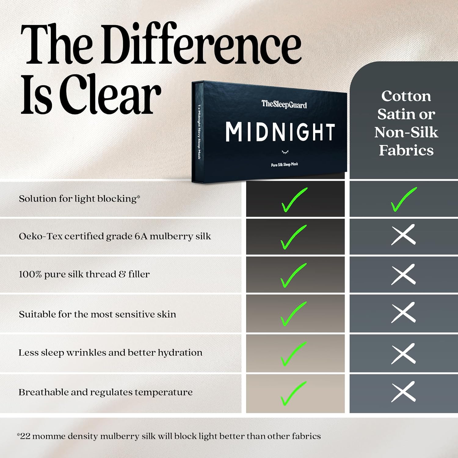 ✅ INVEST IN YOUR SLEEP – Experience TheSleepGuard difference with our luxury sleeping masks. Crafted from the highest grade 6A Mulberry silk at 22 momme and certified by Oeko-Tex to ensure you sleep soundly. Remember, better sleep leads to a better you.