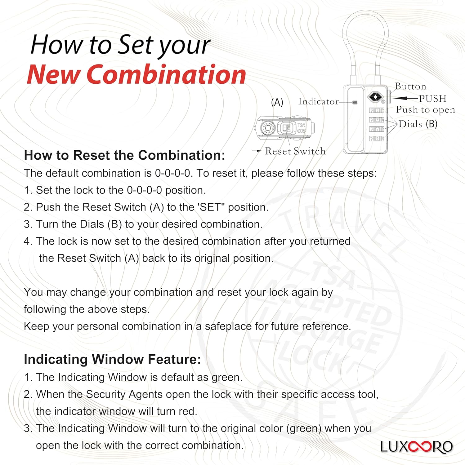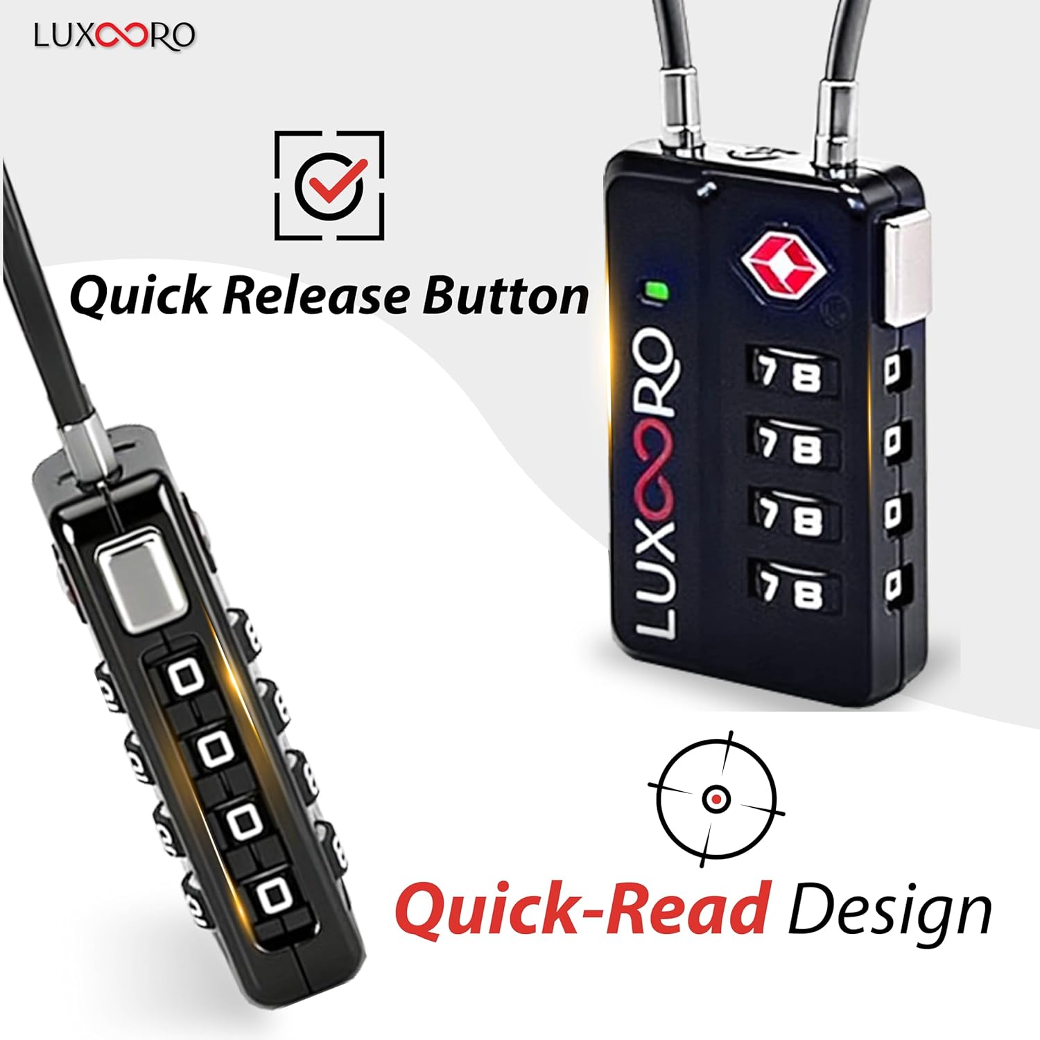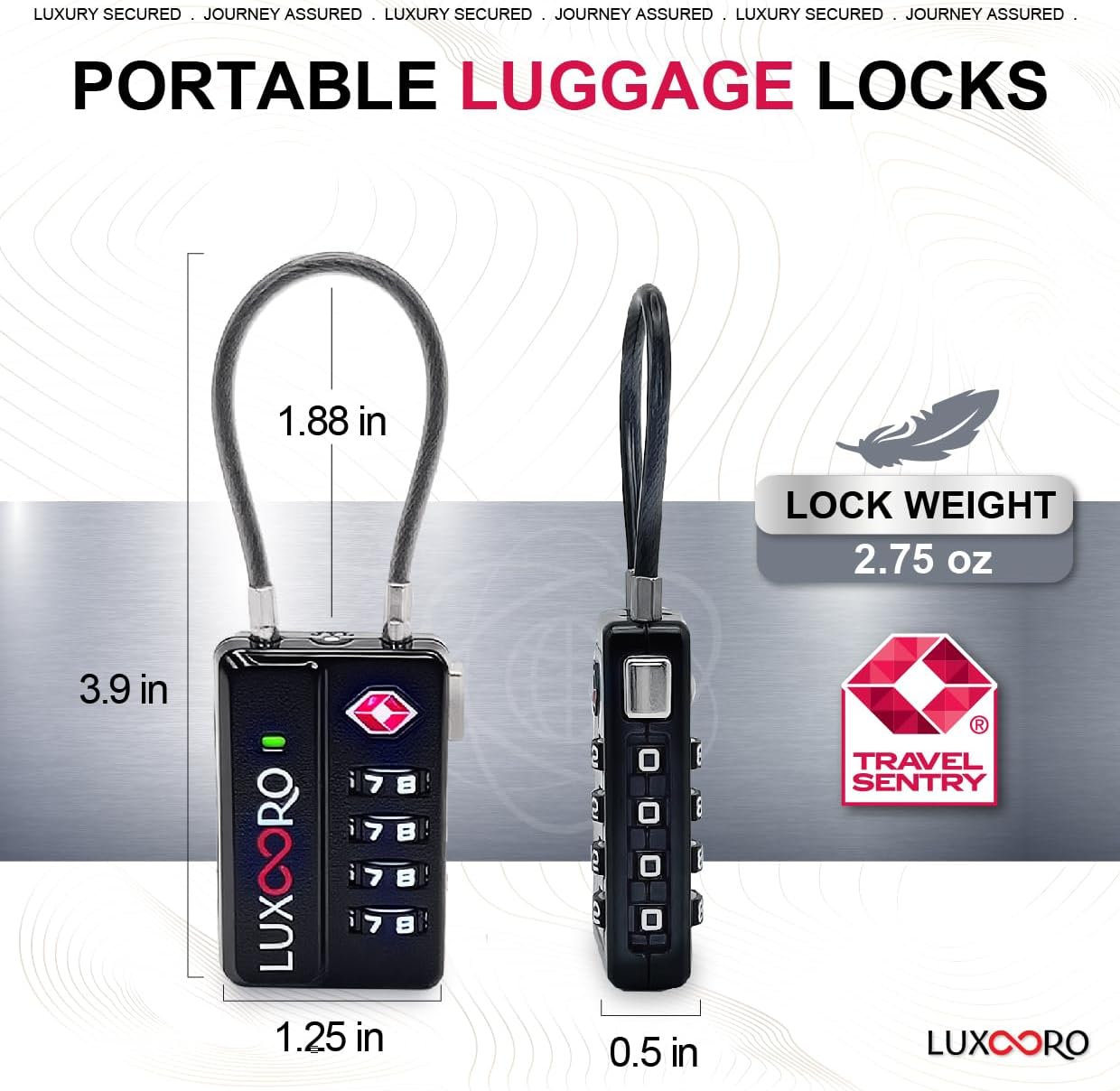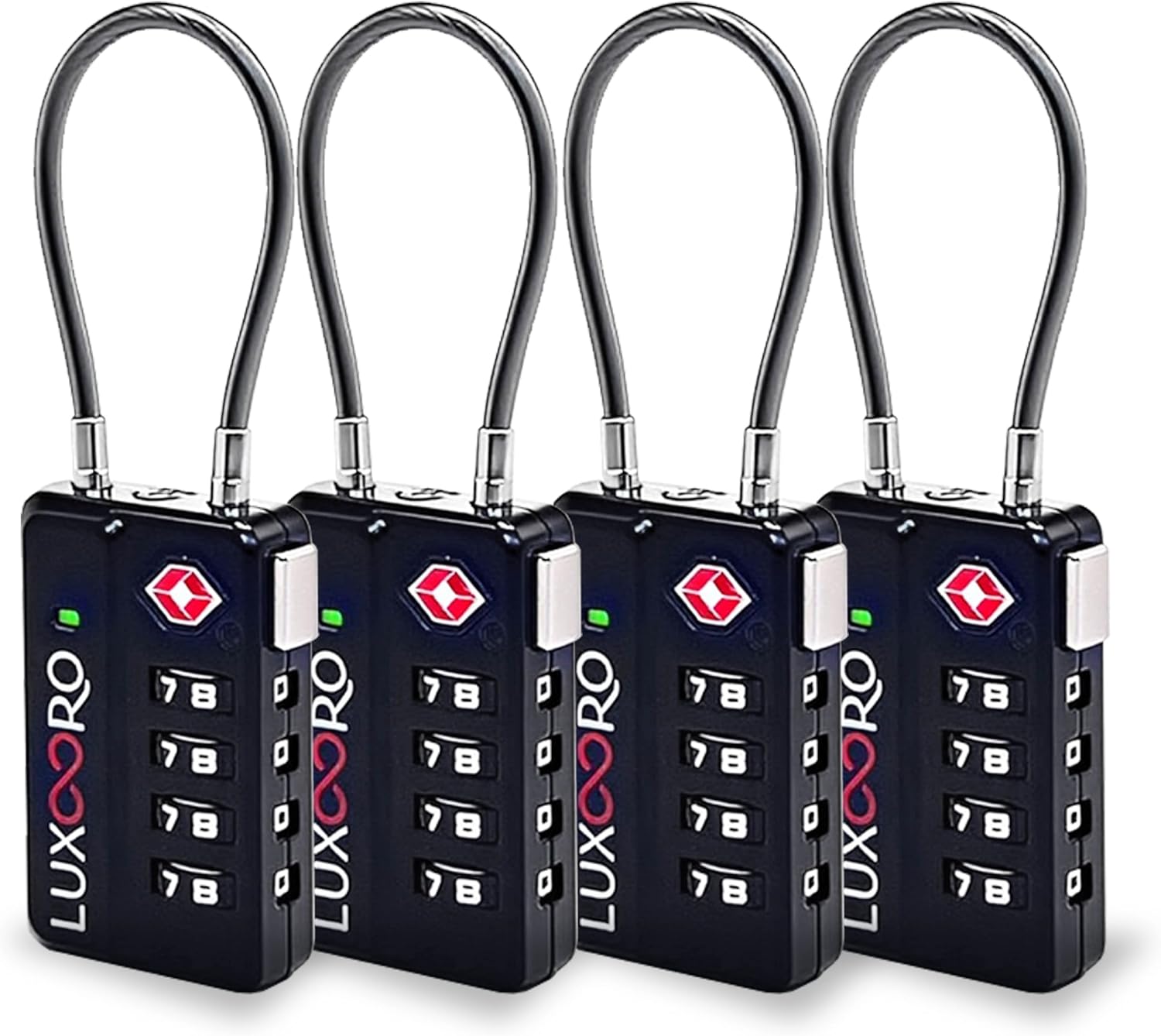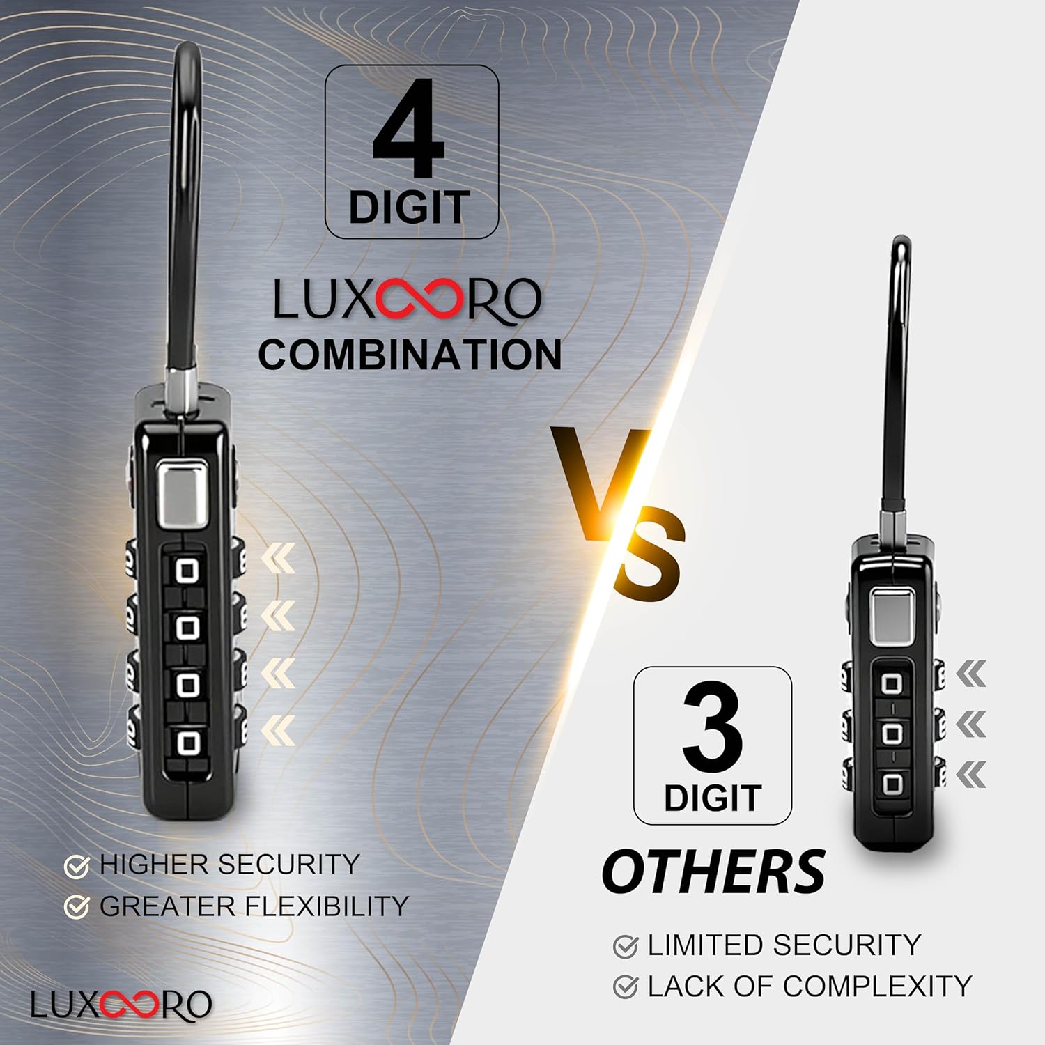 LUXOORO 4-Digit Combination luggage locks are strong and built to keep your own belongings better and set your mind at rest while on business trips, traveling, hiking, fitness, etc.
