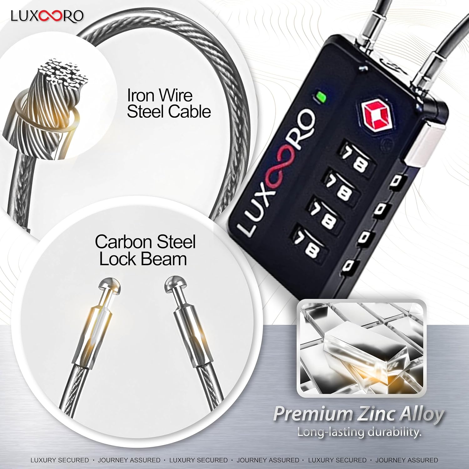 ✈️Rugged & Durable locks: LUXOORO TSA-approved lock is expertly crafted from premium and heavy-duty zinc alloy and reinforced steel, engineered to resist hammering, cutting, and sawing attempts. Its rugged construction provides maximum protection against scratches, corrosion, and wear—making it ideal for both daily use and demanding travel conditions.