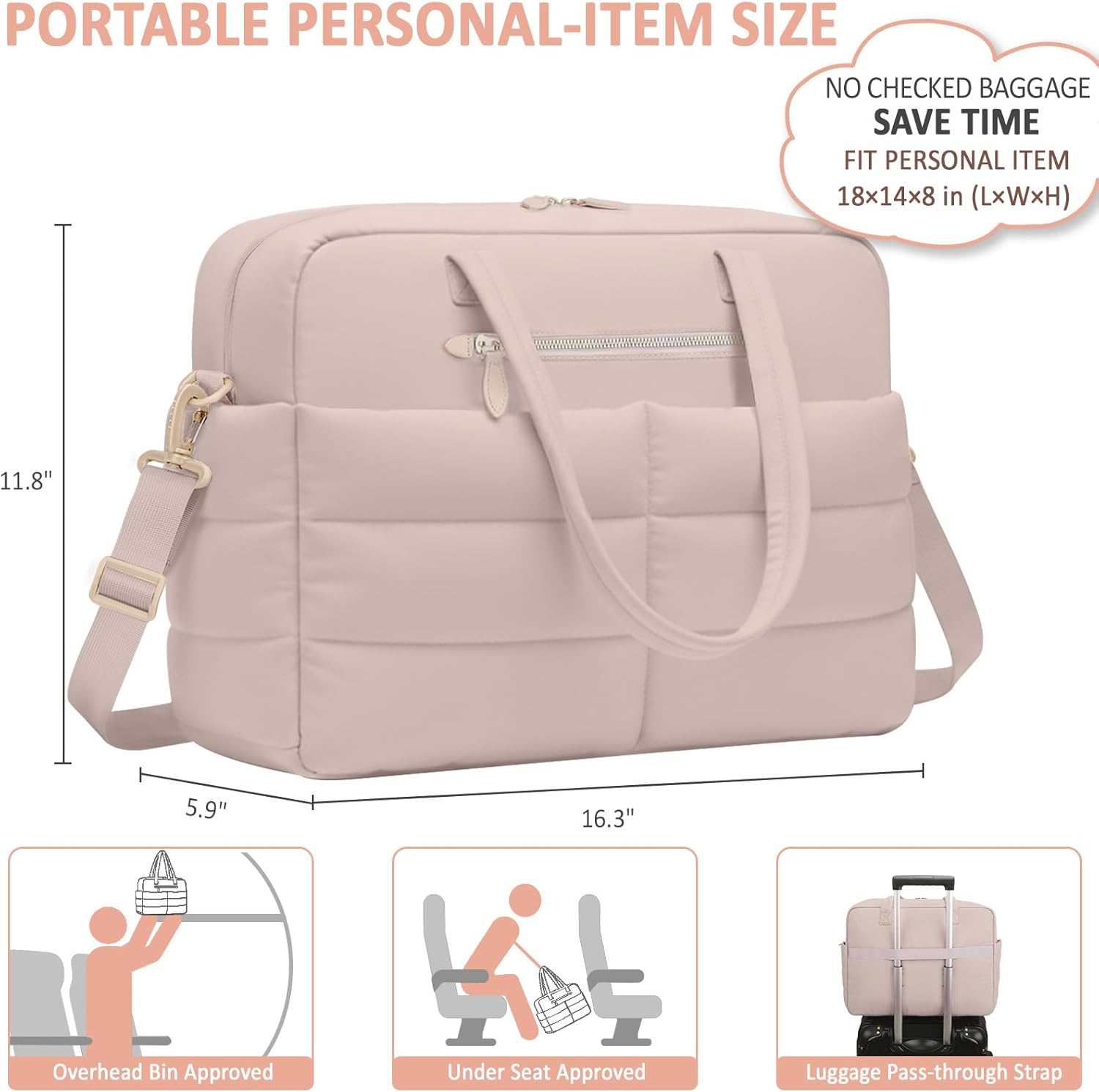 Fashion-Forward & Carry-On Approved: This duffel bag meets most airline carry-on bag size requirements, fitting under seats and in overhead bins. Its quick-access exterior pocket stores essentials, while a trolley sleeve attaches to luggage handles for hassle-free travel