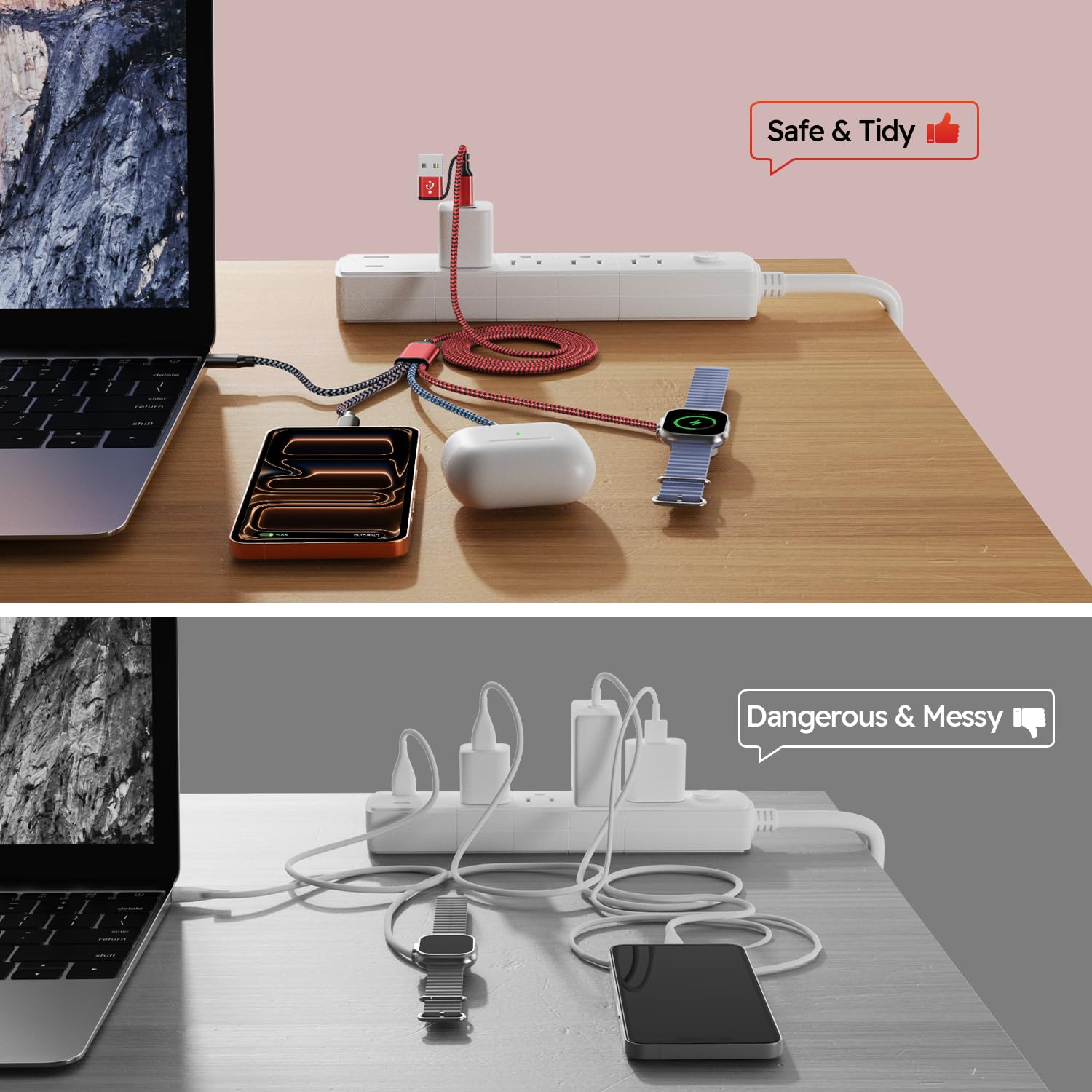 [iWatch Charger]:Our iPhone watch charger features auto chip recognition and is compatible with the latest iOS system for your smartwatch. Equipped with a built-in strong adsorption charging module, this multi chargers for all devices attaches to the back of your iWatch and holds it securely in place, ensuring safe and efficient charging. (Note: To better prevent overheating issues, we recommend charging without a case. Not compatible with Galaxy Watch)