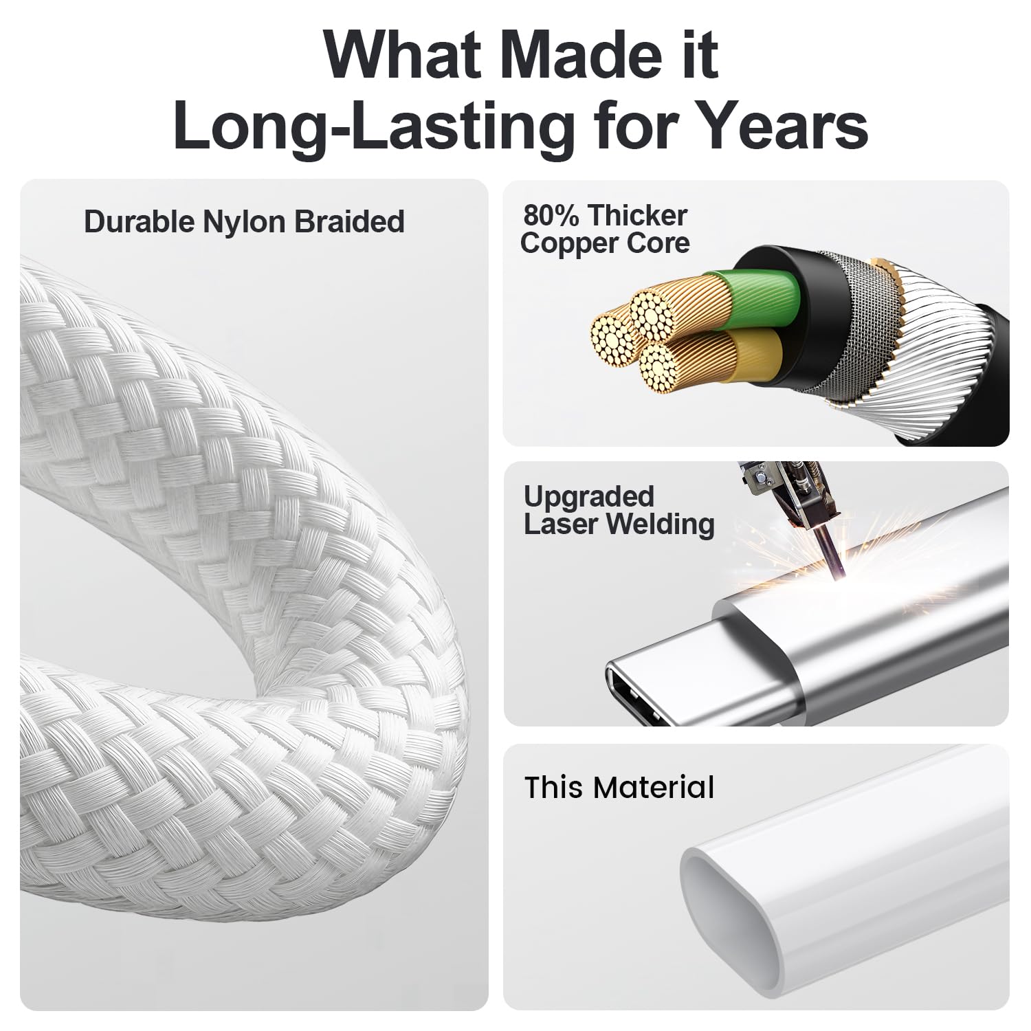 [Crafted for Resilience: The No-Worry 3-in-1 Cable]: We build durability into every detail. Featuring a military-grade nylon braid for flexibility and a snag-free experience, combined with precision-machined aluminum alloy connectors. Its core strength comes from a unibody plug and laser-welded joints, validated by 40,000+ bend-cycle tests. This is the robust, tangle-resistant build that keeps your trio of devices powered, day in and day out
