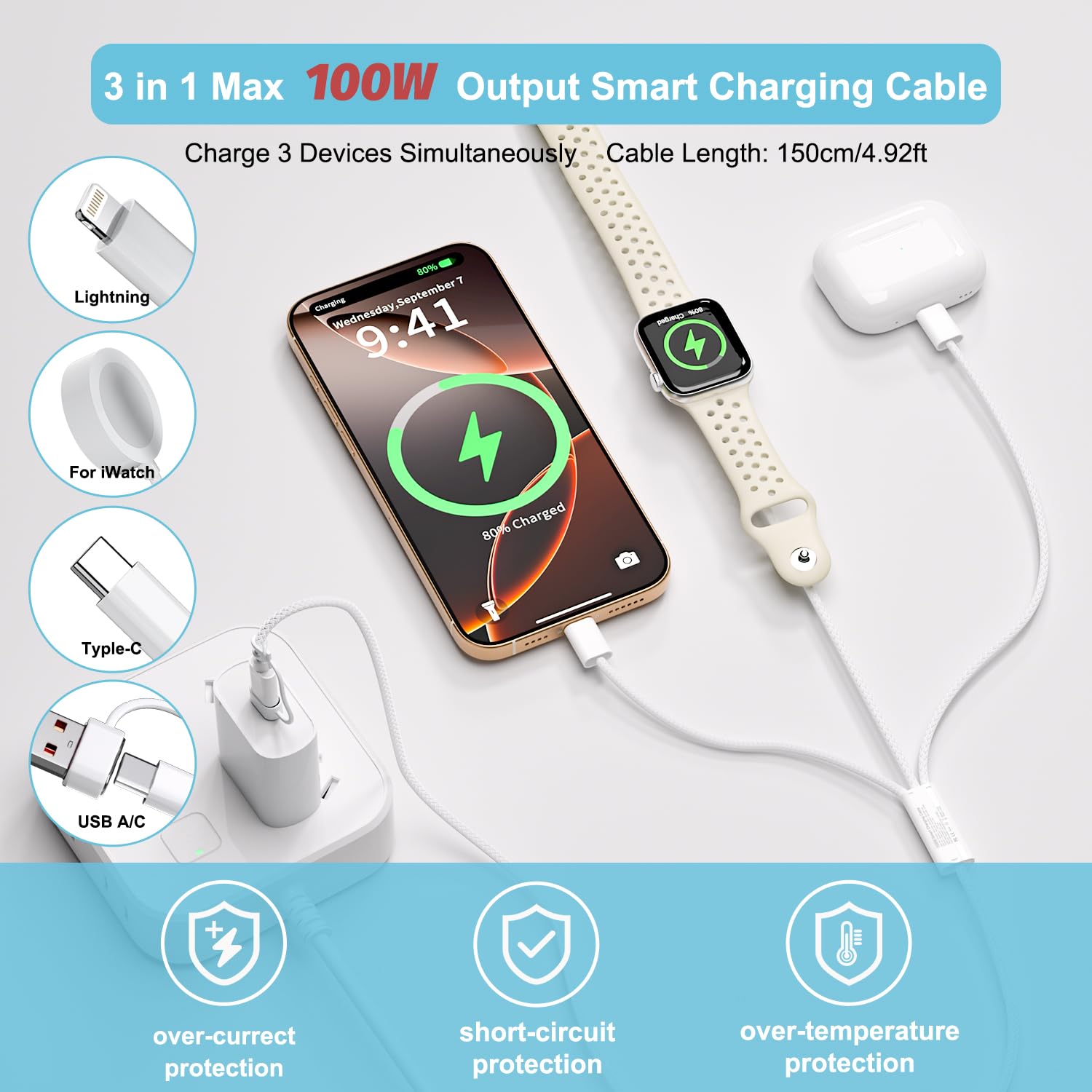 [Dual-Core Performance: 100W Charging & High-Speed Data in One]: Experience uncompromised power and connectivity. This 3 in 1 Apple Watch Charging Cable provides full 100W PD fast charging (20V/5A) for your entire Apple ecosystem at once, alongside reliable 480Mbps data sync for instant file transfers. Built with a certified E-Marker chip for intelligent power management and protected charging, it’s the definitive cable for professionals and power users who demand peak performance on all fronts