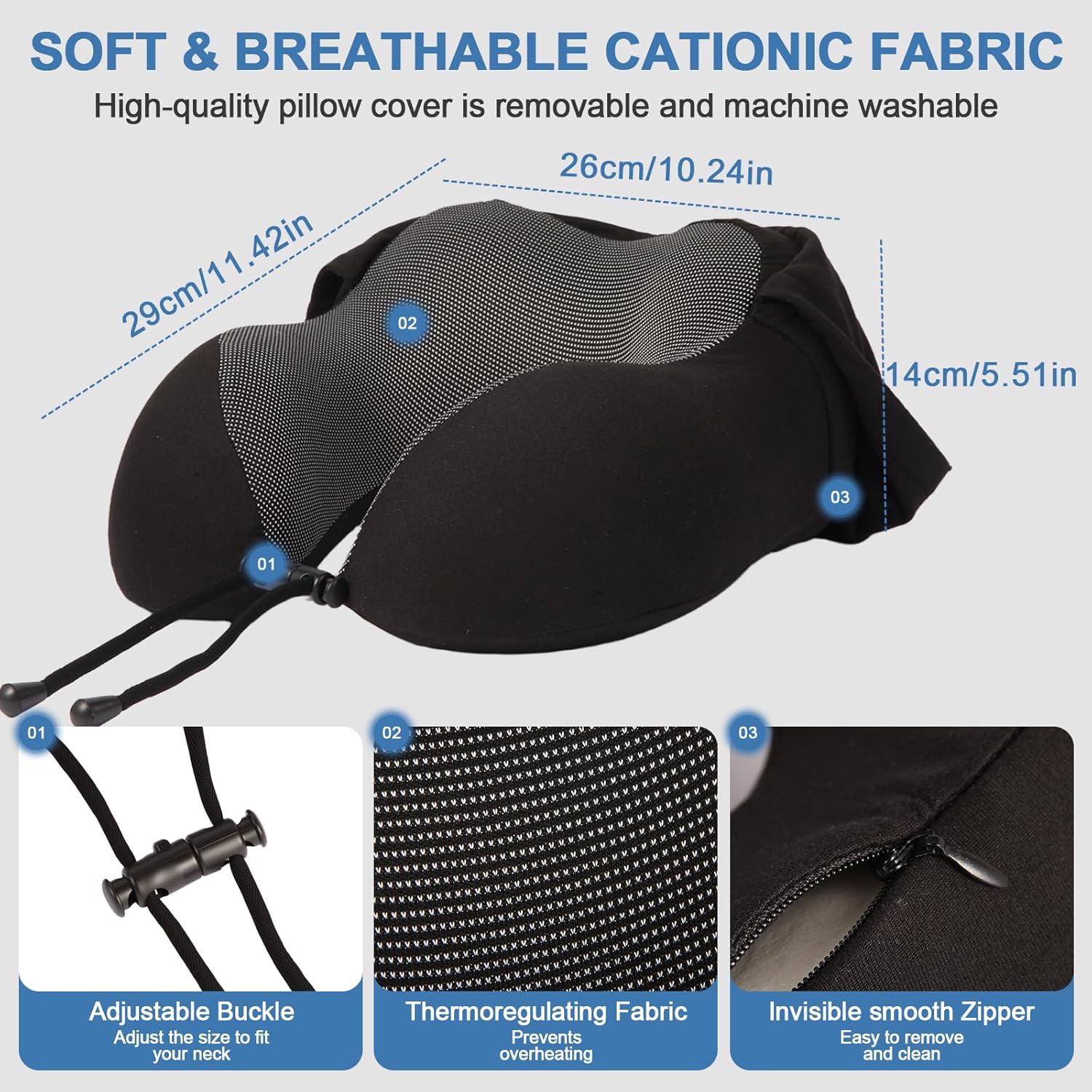【Thoughtful Travel-Ready Extras】 Worried about hygiene and noise on crowded flights? We include two soft earplugs and a removable machine-washable cover. Stay protected from germs and disturbances—this neck pillow airplane essential is designed for the practical traveler who values cleanliness and peace of mind.
