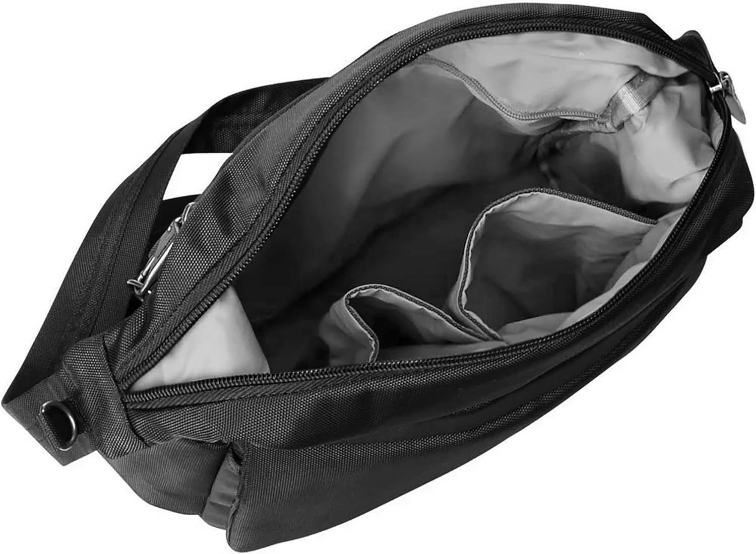 The Anti-Theft Messenger Bag from Travelon features hidden, slash-proof, Chain Link construction, and an adjustable, cable-reinforced, shoulder strap to protect your belongings from pick-pockets and thieves. The roomy main compartment and the organizer compartment features locking zippers for extra security. The hidden caribeener allows you to secure your bag to a post or chair to prevent passersby from a grab and go. Two zippered expansion pockets hold glasses, a camera, or water bottles.