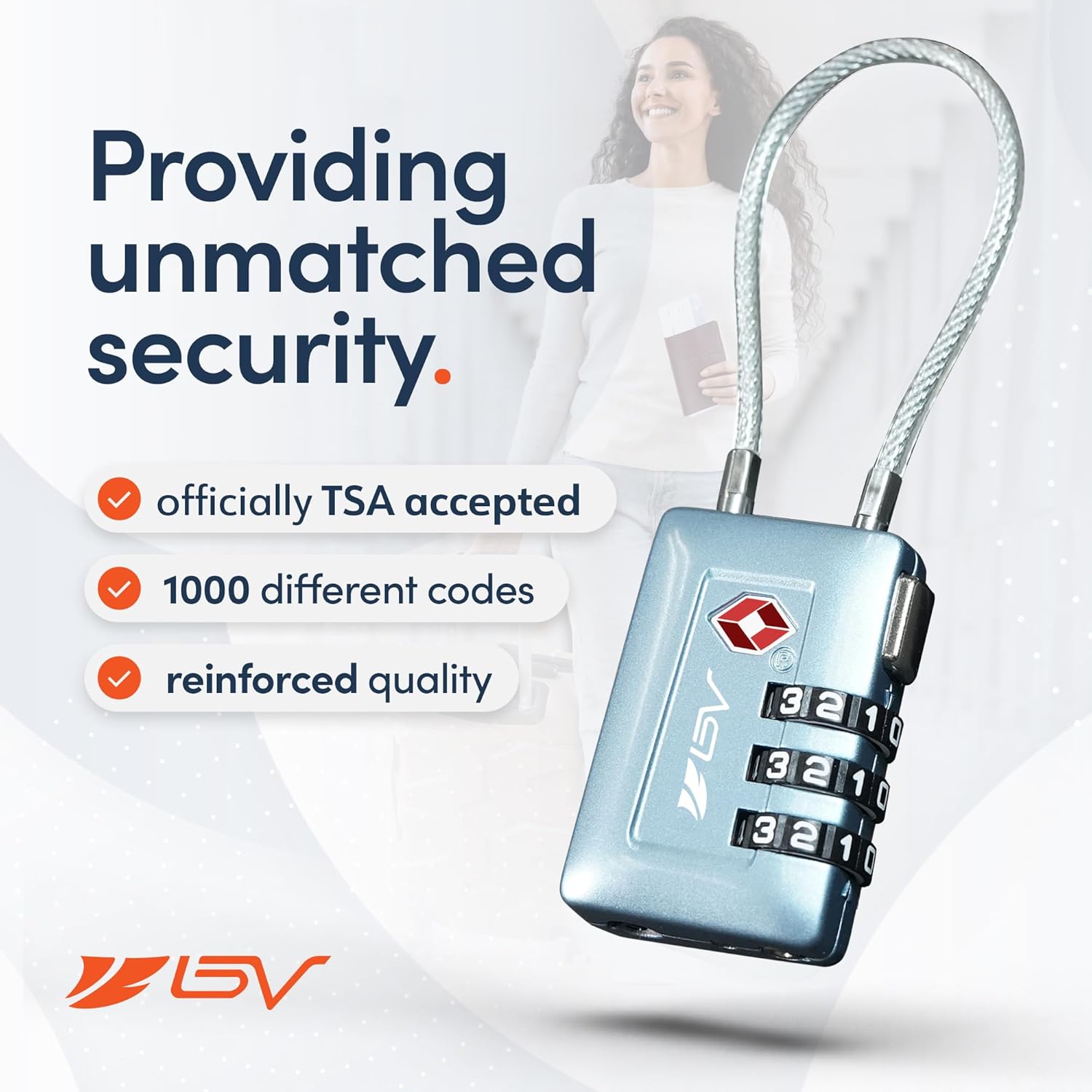 Resettable to 1,000 Possibilities – Set a combination for your backpack lock that you won’t forget from 1.000 possible combinations. BV travel locks tsa approved with multiple possibilities.