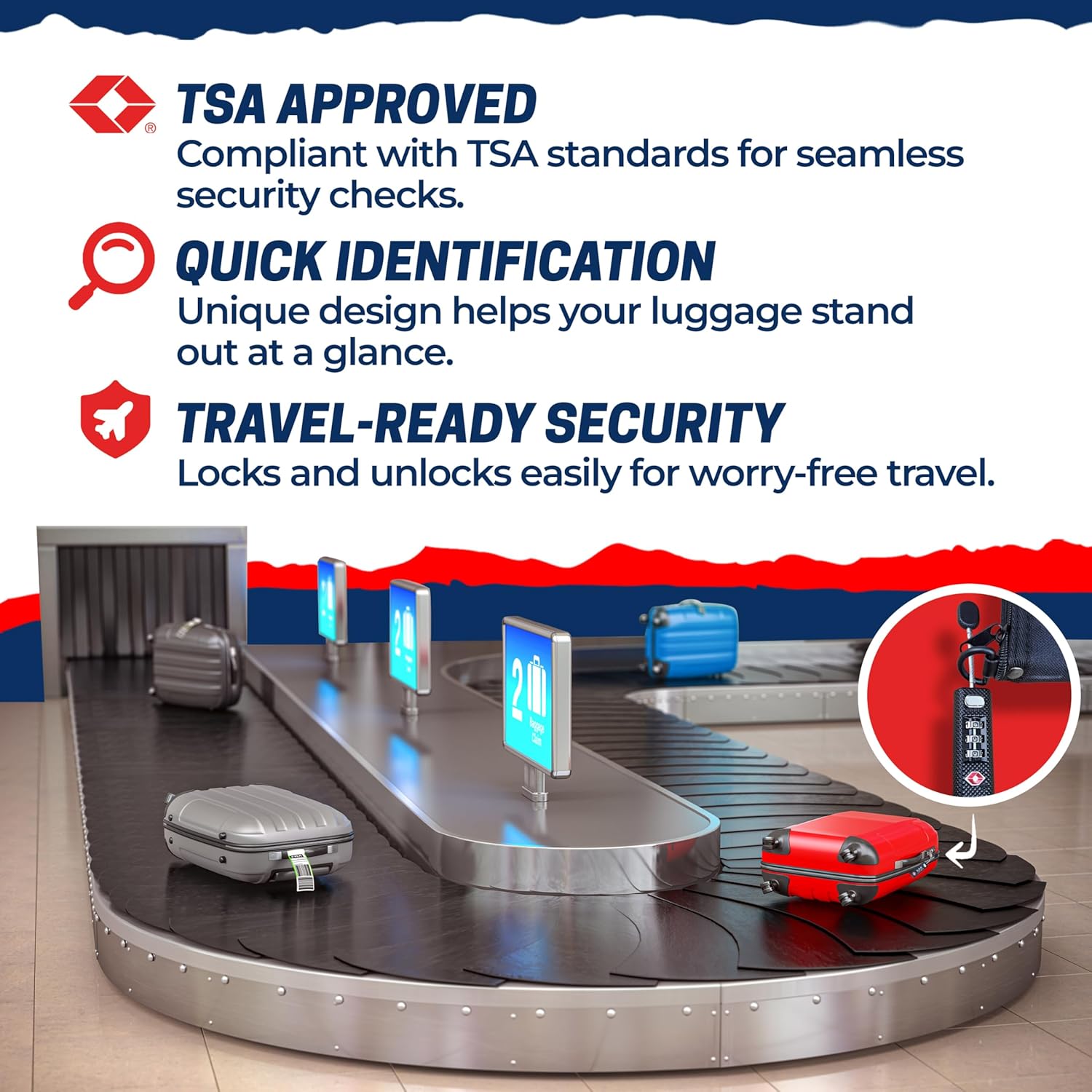 100% TSA APPROVED: These TSA luggage locks meet TSA standards, eliminating the risk of damaged locks during inspections. Ideal for travel bags or as TSA locks for gun case, they secure your belongings with ease