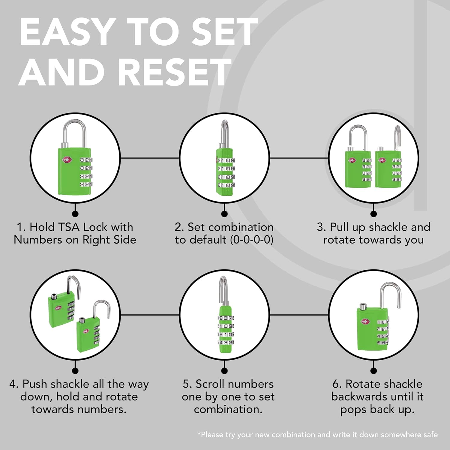 Easy to Set & Read. Effortlessly set your padlock combination with our TSA luggage locks featuring a quick read design and hardened steel construction. Enjoy secure, keyless access every time.